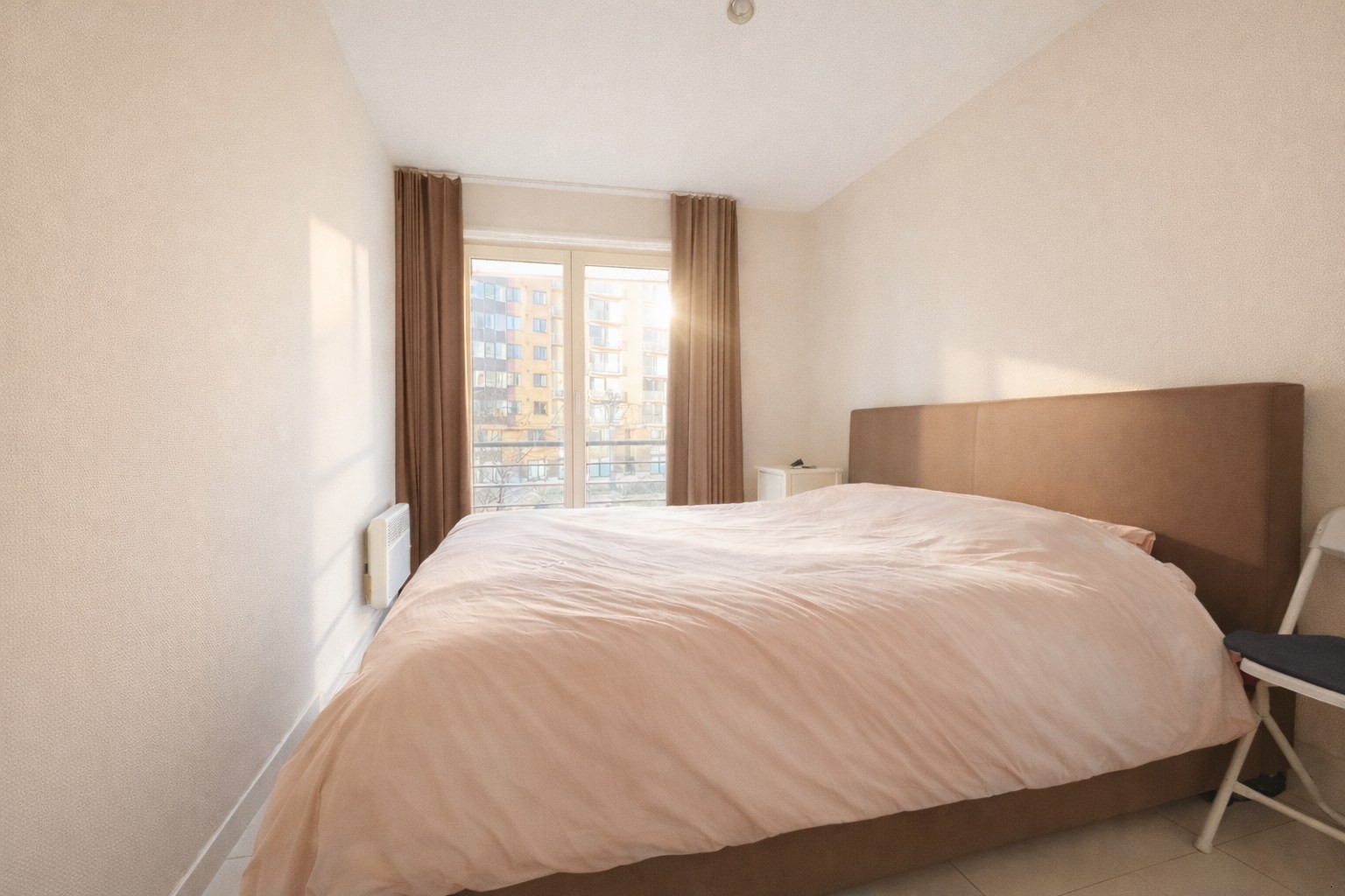 Het betreft een ruim hoekappartement met volgende indeling: grote leefruimte met veel raampartijen en een leuk open zicht, een echte leefkeuken voorzien van alle inbouwtoestellen en een eeteiland, naast de keuken een praktische bergruimte voorzien van ingemaakte kasten, twee volwaardige slaapkamers met maatkasten en een ingerichte badkamer met inloopdouche.