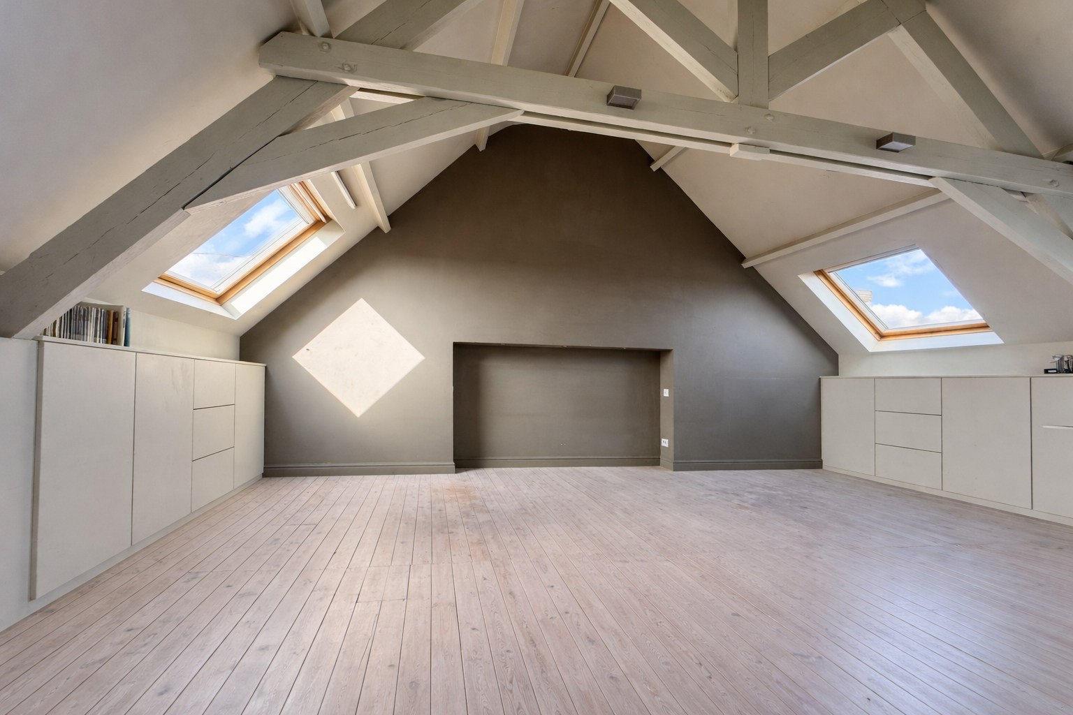 Op de derde verdieping bevindt zich de masterbedroom (ingebouwde kasten).