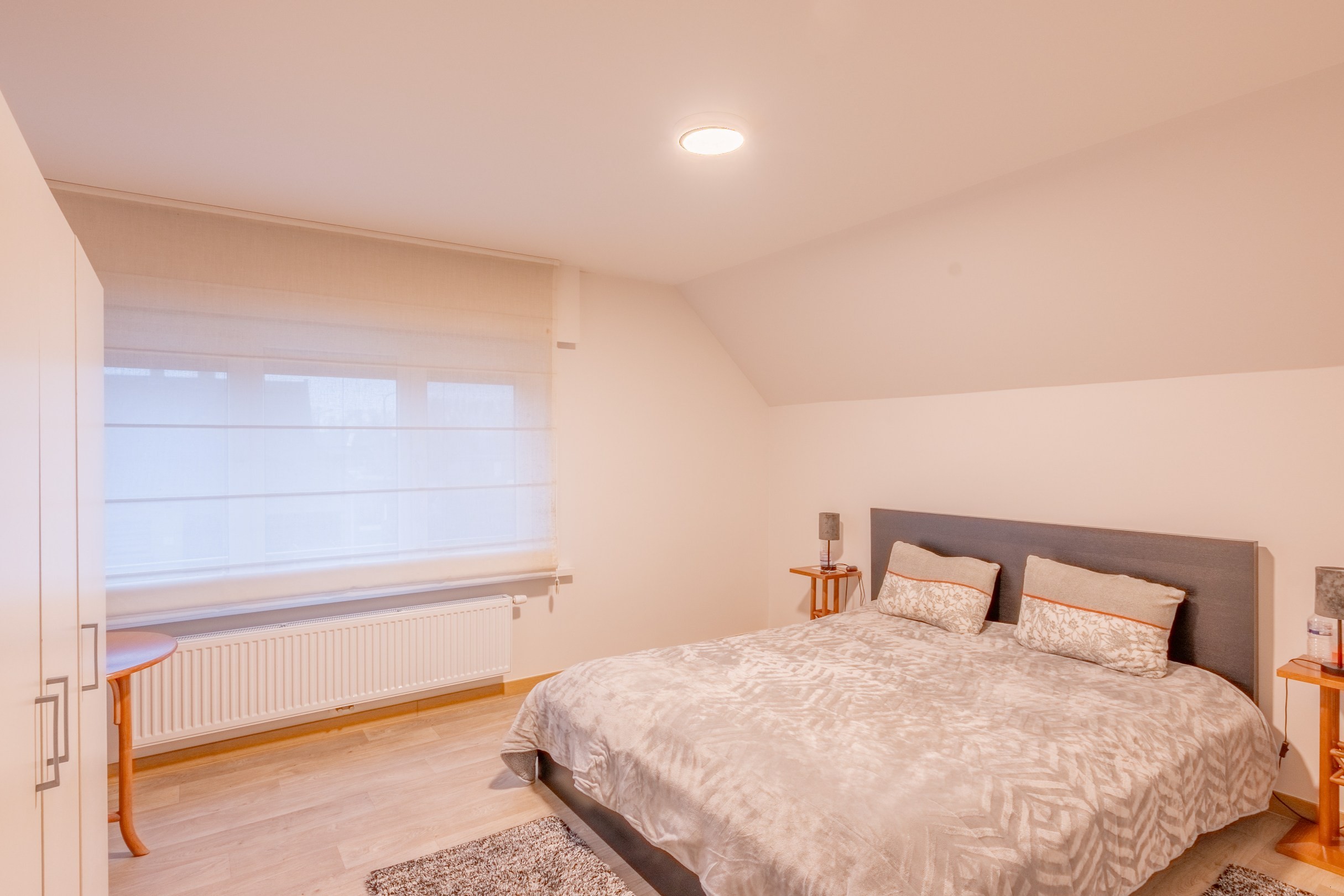 Indeling: bij binnenkomst tref je een ruime inkomhal met gastentoilet, een lichtrijke woonkamer met een volledig uitgeruste open keuken. Aansluitend een inpandige garage met aansluiting voor wasmachine.