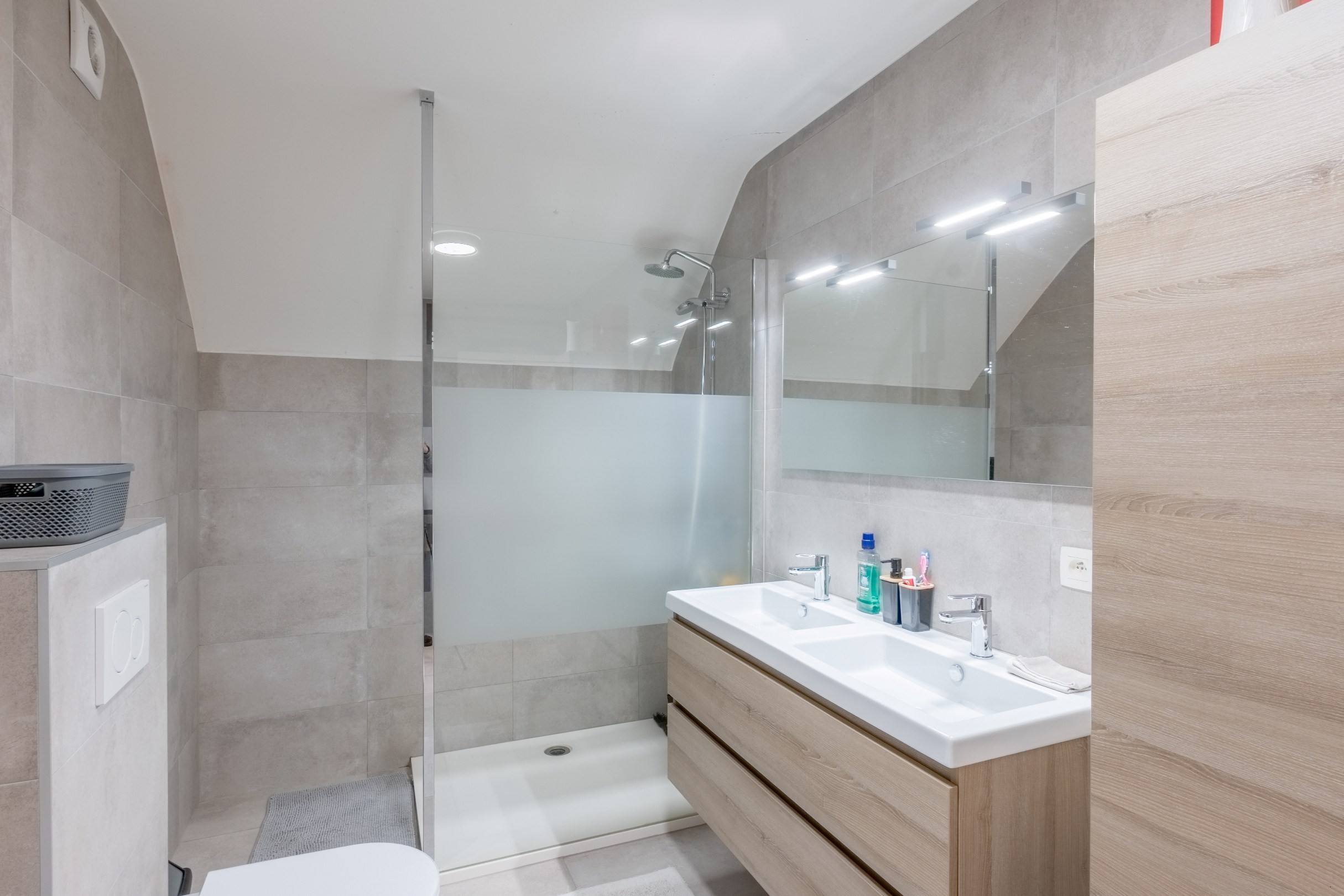Op de eerste verdieping bevinden zich drie ruime slaapkamers en een moderne badkamer met inloopdouche en toilet. Extra opbergzolder, ideaal als opslag.