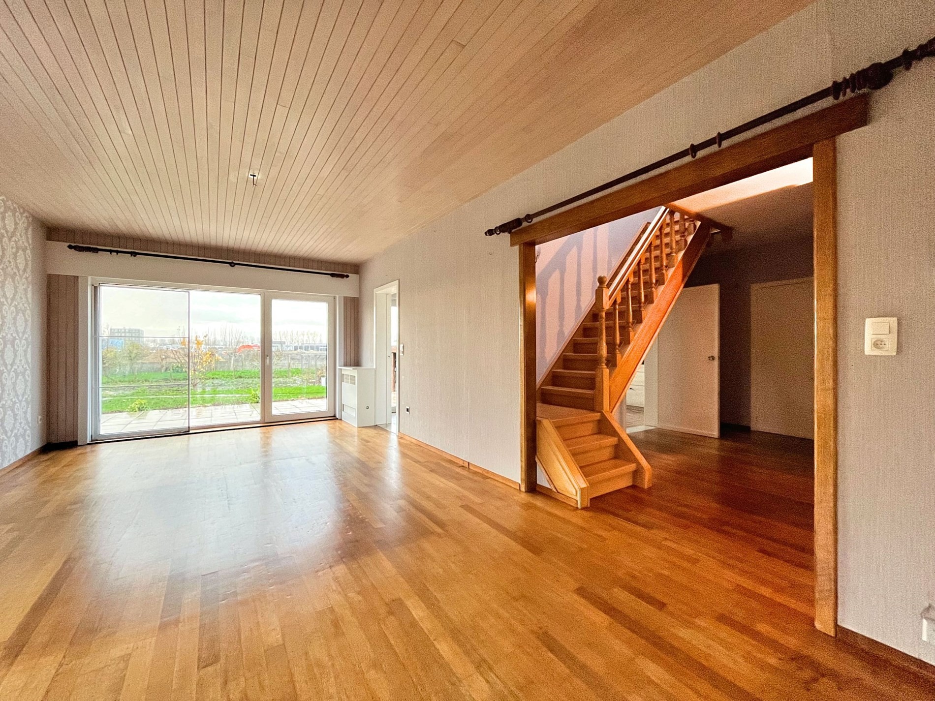 Gelijkvloers: inkomhal met apart toilet, bureauruimte of eerste slaapkamer, prachtige leefruimte met zit en eetplaats, ingerichte keuken met toegang tot de kelder en een mooi aangelegd terras die uitgeeft op de groene tuin met annex tuinberging.