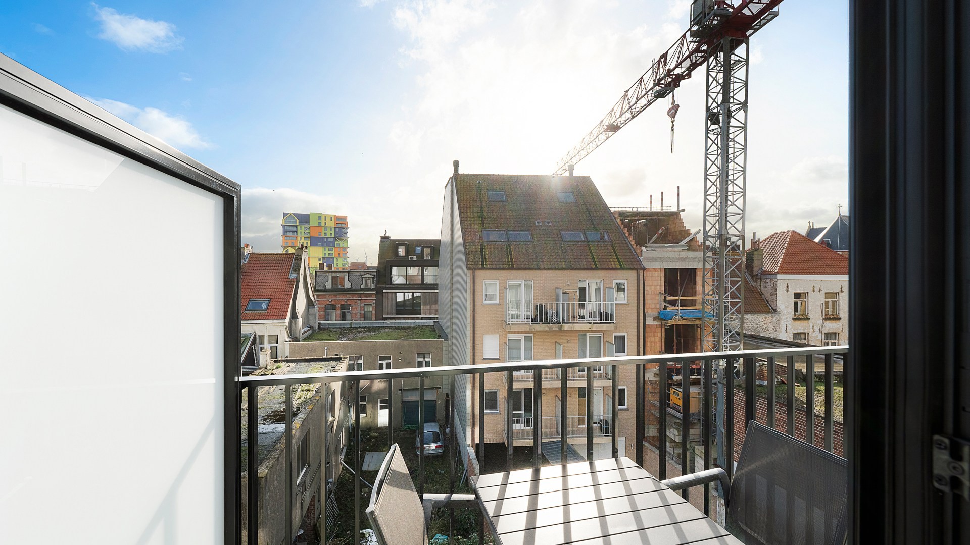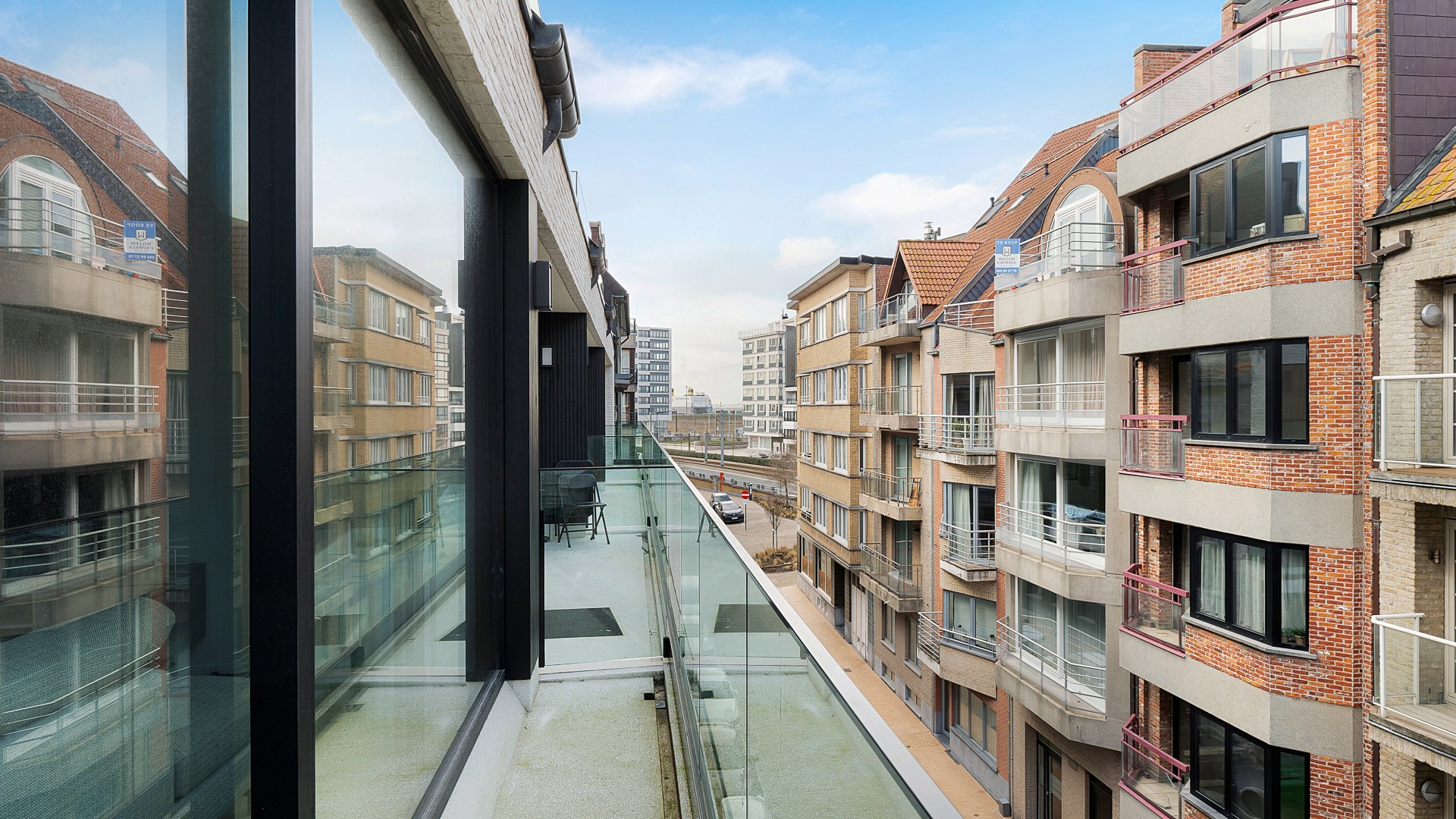 Zowel vooraan als achteraan een terras. Bergruimte met aansluiting voor de wasmachine op het appartement aanwezig.