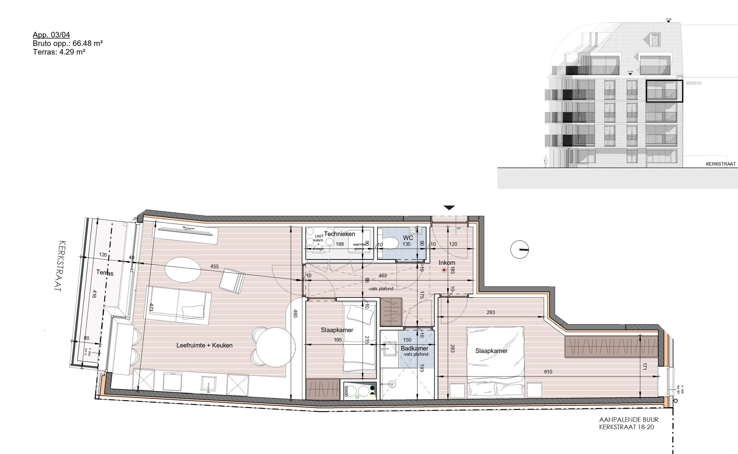 Bij het binnenkomen komt u in de inkomhal met plaats voor een vestiaire kast en met een apart gastentoilet. De leefruimte voelt open en uitnodigend aan en biedt voldoende plaats voor zowel een zithoek als een eethoek. De grote raampartijen zorgen voor een mooie lichtinval en creëren een aangename woonomgeving. De open keuken sluit hier mooi op aan en is functioneel ingericht voor dagelijks comfort. Daarnaast is er een ruime berging voorzien met aansluiting voor de was- en droogmachine. Via de woonkamer is er toegang tot het terras.