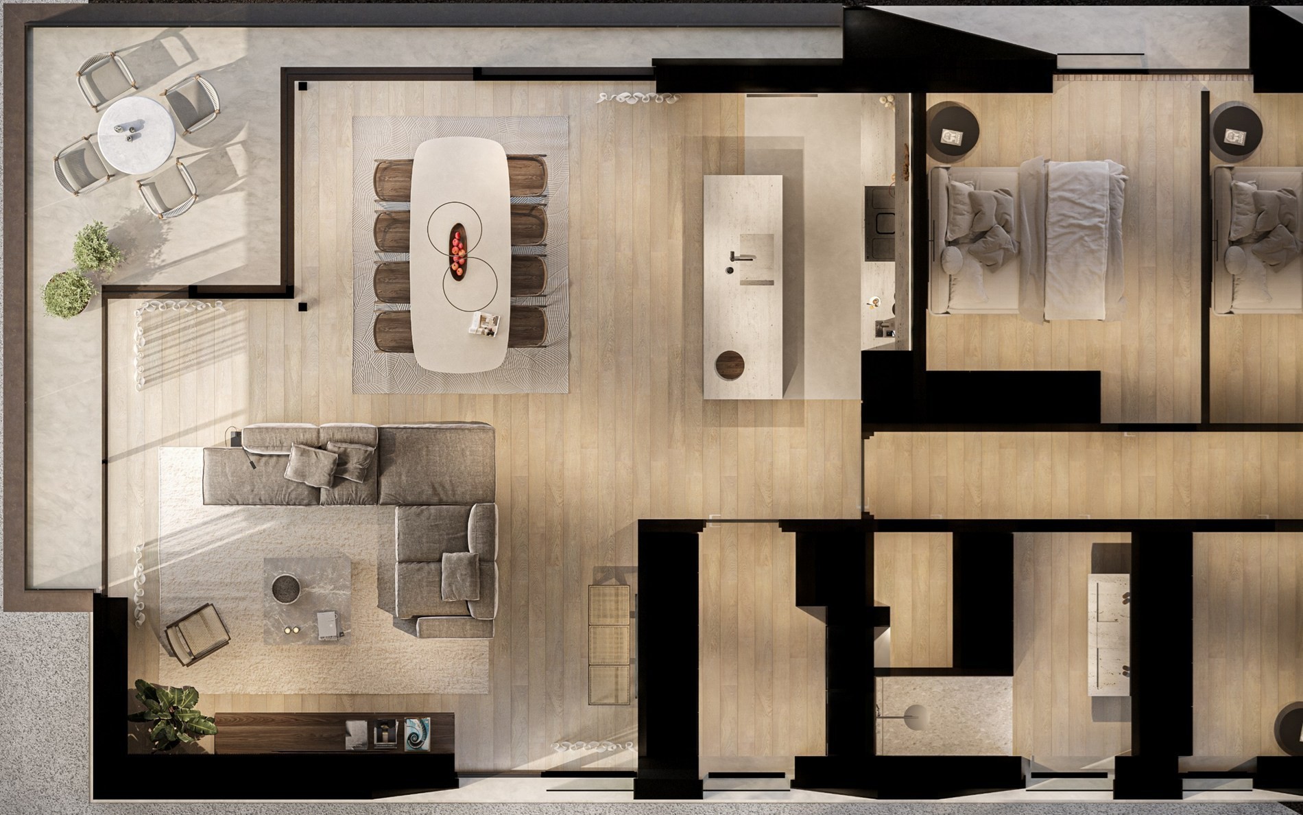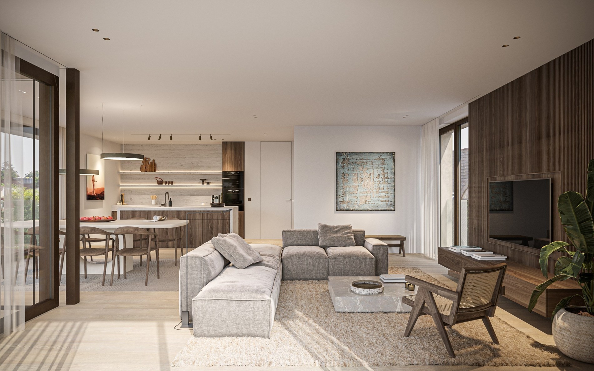 De indeling is doordacht en ruim: een aangename woonkamer voorzien van veel natuurlijk lichtinval, een eetplaats en een open ingericht keuken voorzien van alle comfort. Het appartement beschikt verder over 3 grote slaapkamers, 2 stijlvolle badkamers en een afzonderlijke, ruime wasplaats. De combinatie van praktische functionaliteit en comfortabele leefruimtes maakt dit appartement ideaal voor gezinnen of wie behoefte heeft aan extra ruimte.