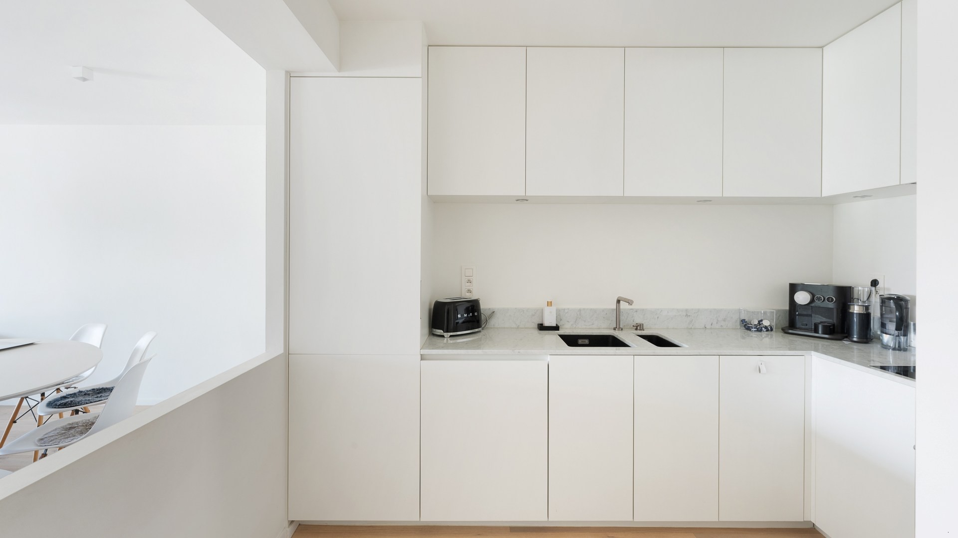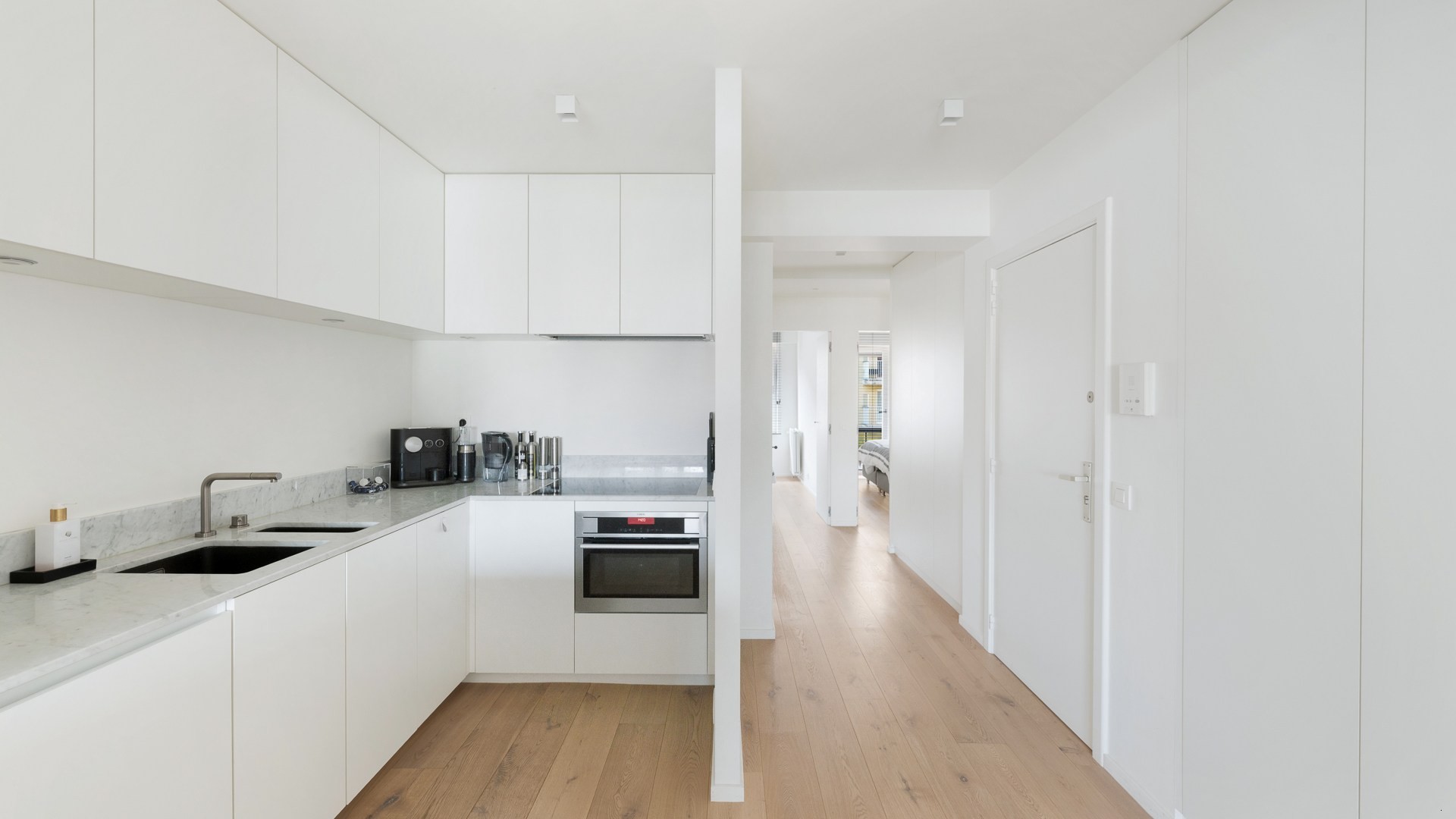 Via de inkomhal met gastentoilet en praktische bergruimte komt u in de aangename en lichtrijke woonkamer met open zichten. Vanuit de leefruimte heeft u toegang tot het eerste terras aan de voorzijde. Aansluitend bevindt zich de open, volledig ingerichte keuken, uitgerust met alle nodige comfort.