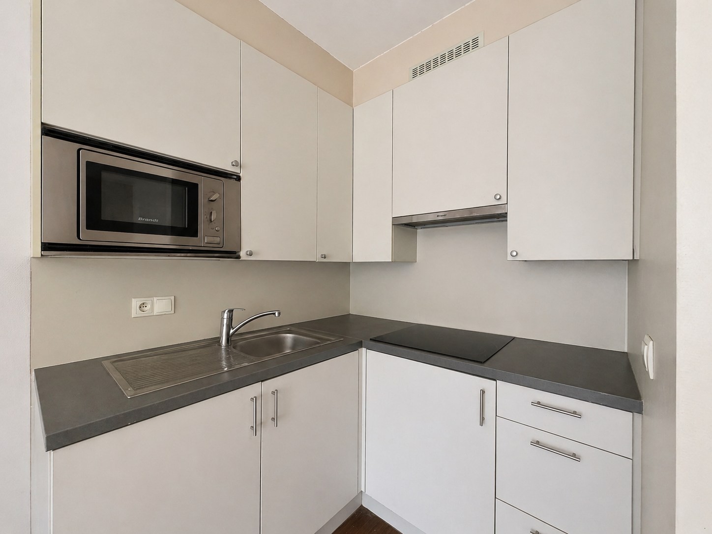 Indeling: Inkomhal met gastentoilet, aangename en lichtrijke woonkamer met open zicht op de Leopoldlaan, ingerichte open keuken voorzien van alle nodige toestellen, badkamer met ligbad en één slaapkamer.
