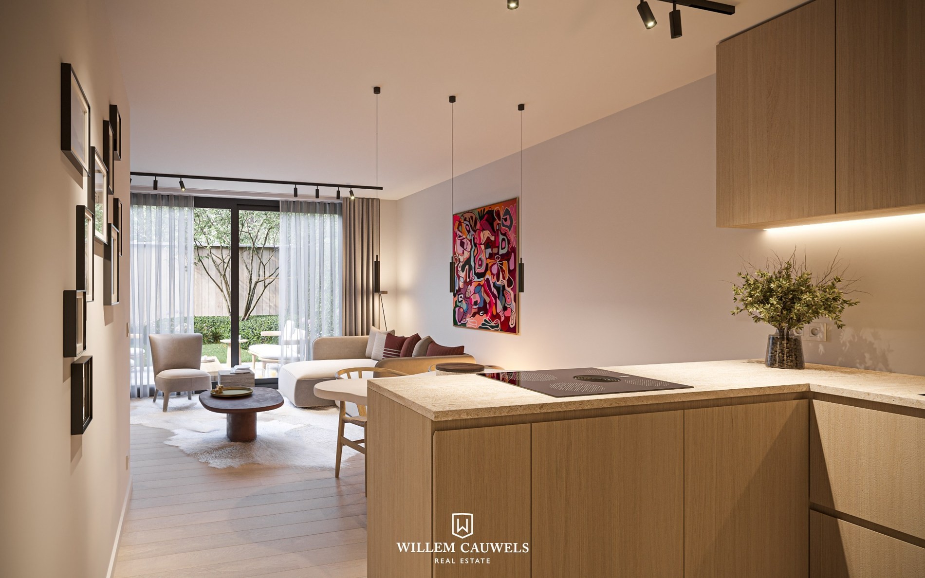 Indeling: inkomhal met gastentoilet, een lichtrijke leefruimte voorzien van grote ramen die de gezellige stadstuin verbinden met het interieur. Verder nog een moderne open keuken met alle nodige comfort en een ruime afzonderlijke berging met plaats voor een was- en droogmachine. Het appartement is uitgerust met 2 slaapkamers en 1 badkamer met inloopdouche. Er is de mogelijk om te opteren voor een indeling met 1 slaapkamer waardoor de woonkamer nog breder en groter wordt. De tuin in zuidwest gericht.