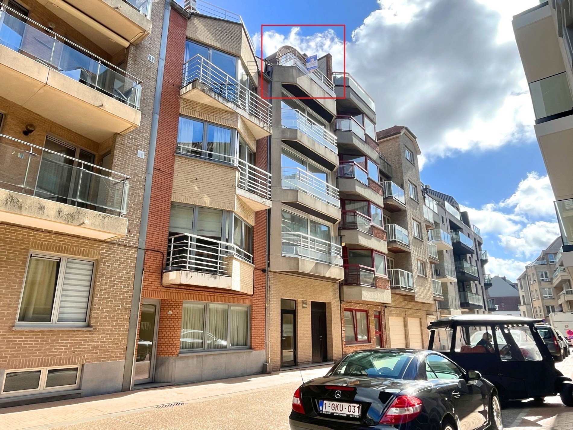 Inkom, gastentoilet, een zonnige woonkamer met toegang tot een terras, een aparte keuken die mogelijks in de leefruimte kan geïntegreerd worden, boven twee slaapkamers en een ingericht badkamer. De lift gaat zowel naar de vierde als de vijfde etage. In het gebouw is er een private kelderberging en fietsenberging inbegrepen.