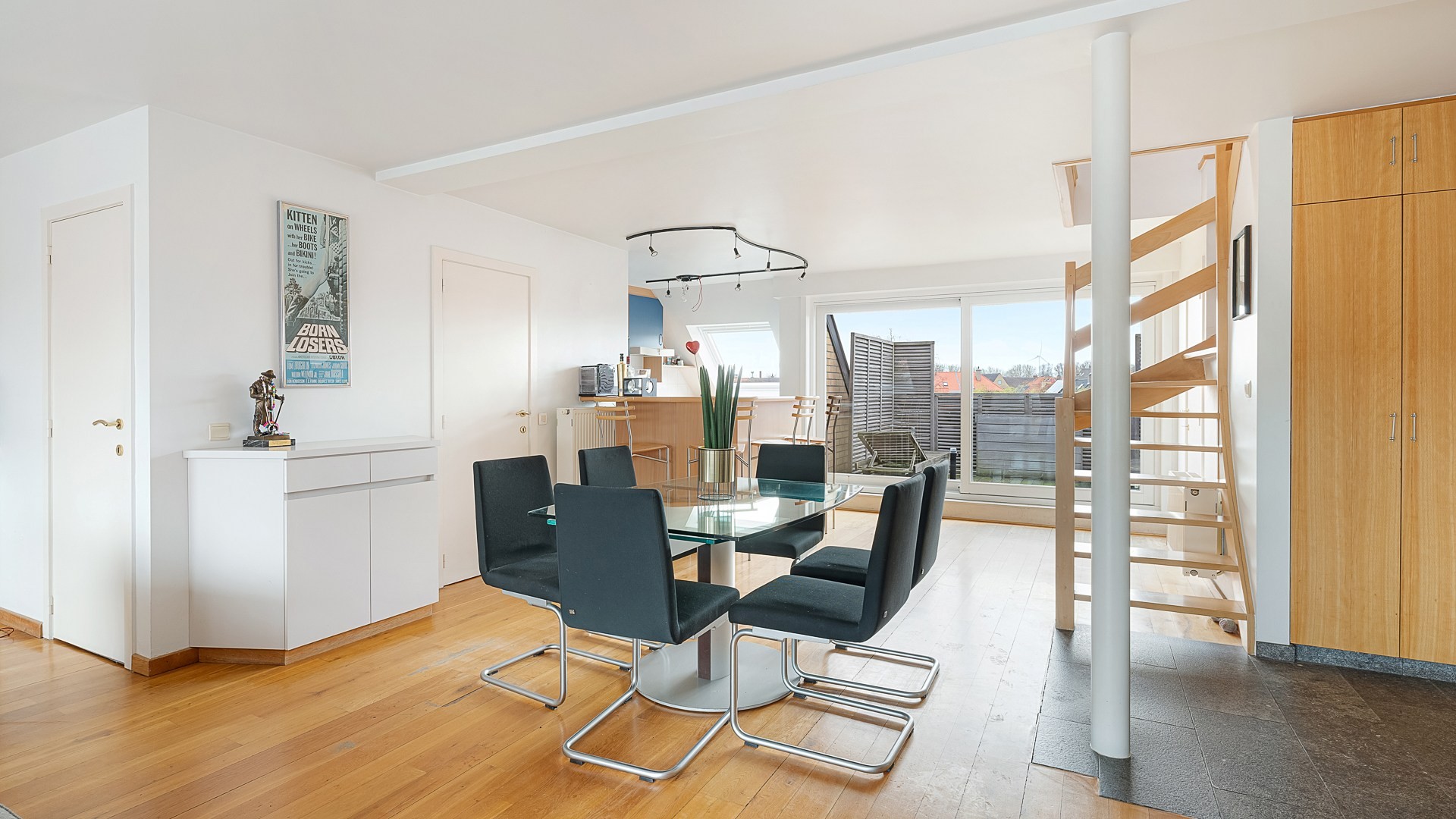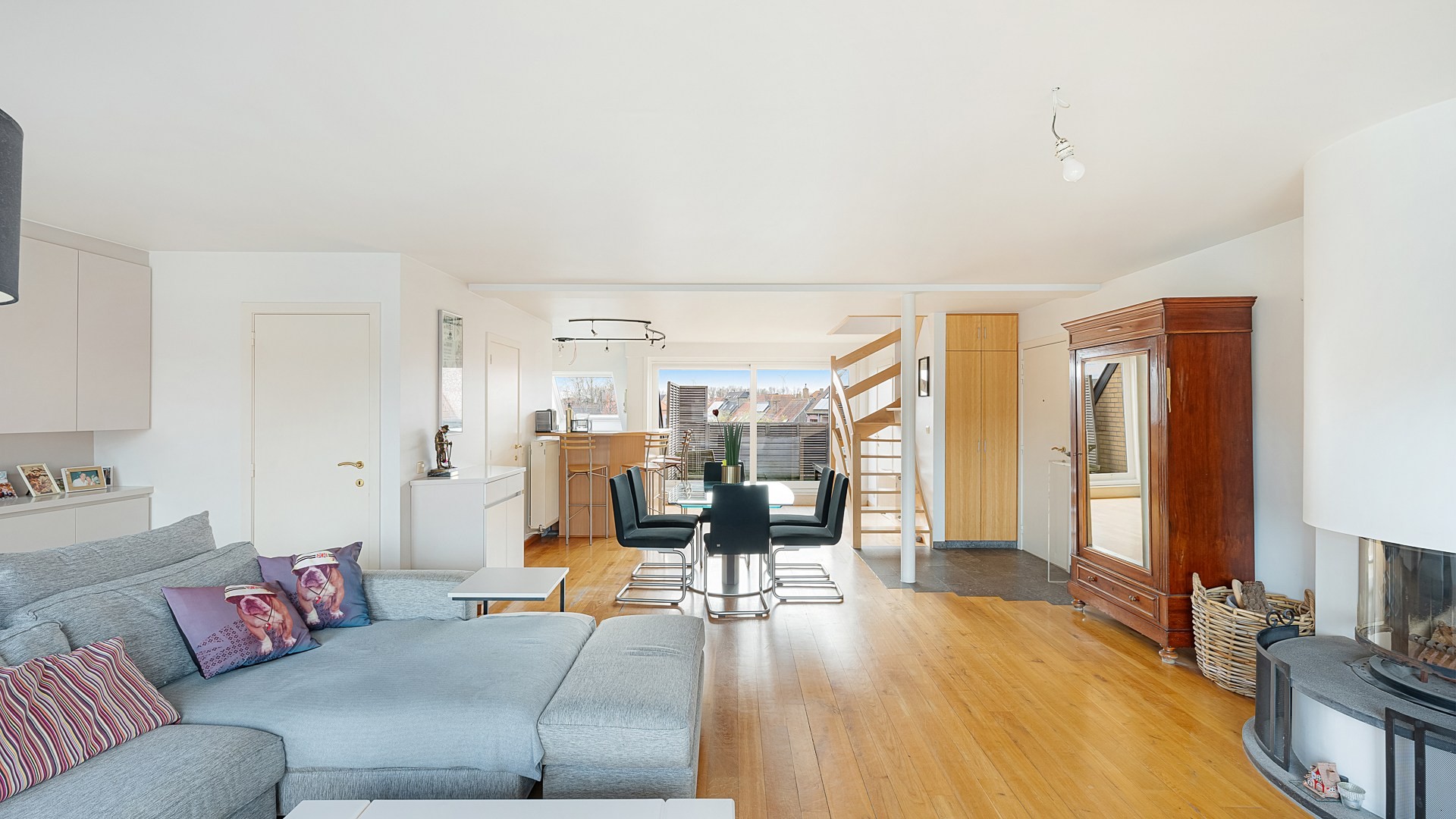Achteraan bevindt zich een ruim en zonnig terras, perfect georiënteerd op het zuiden.