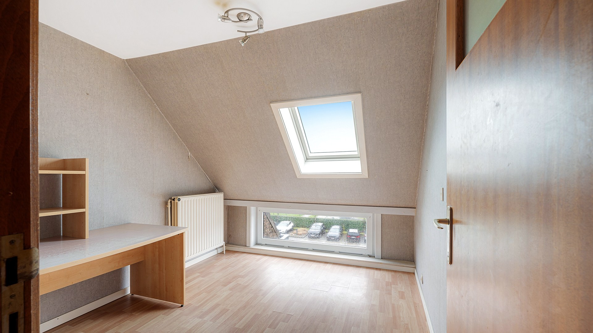 Het duplex appartement strekt zich uit over de tweede en derde verdieping en beschikt over een ruime leefruimte met terras aan de voorzijde, een volledig uitgeruste keuken en een apart gastentoilet. Op de bovenverdieping bevinden zich drie slaapkamers, waarvan één met dressing, een badkamer en een extra bergzolder.