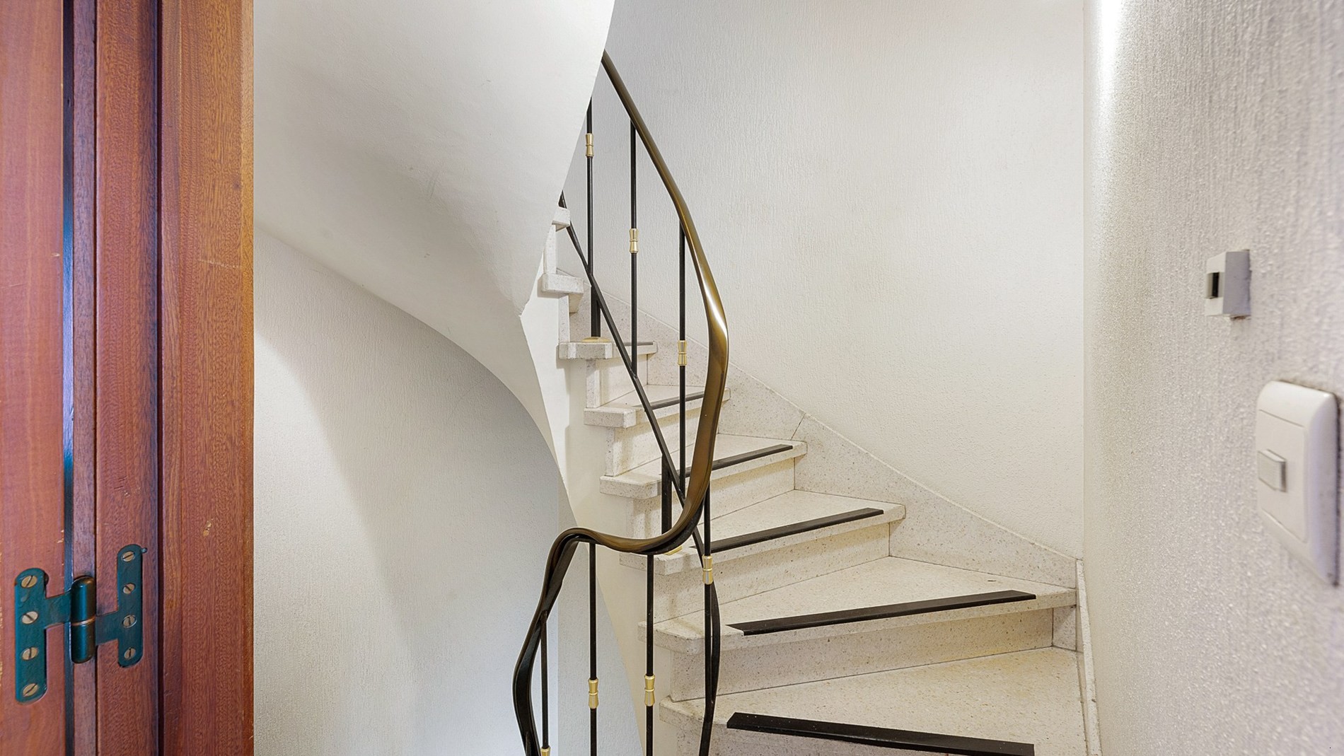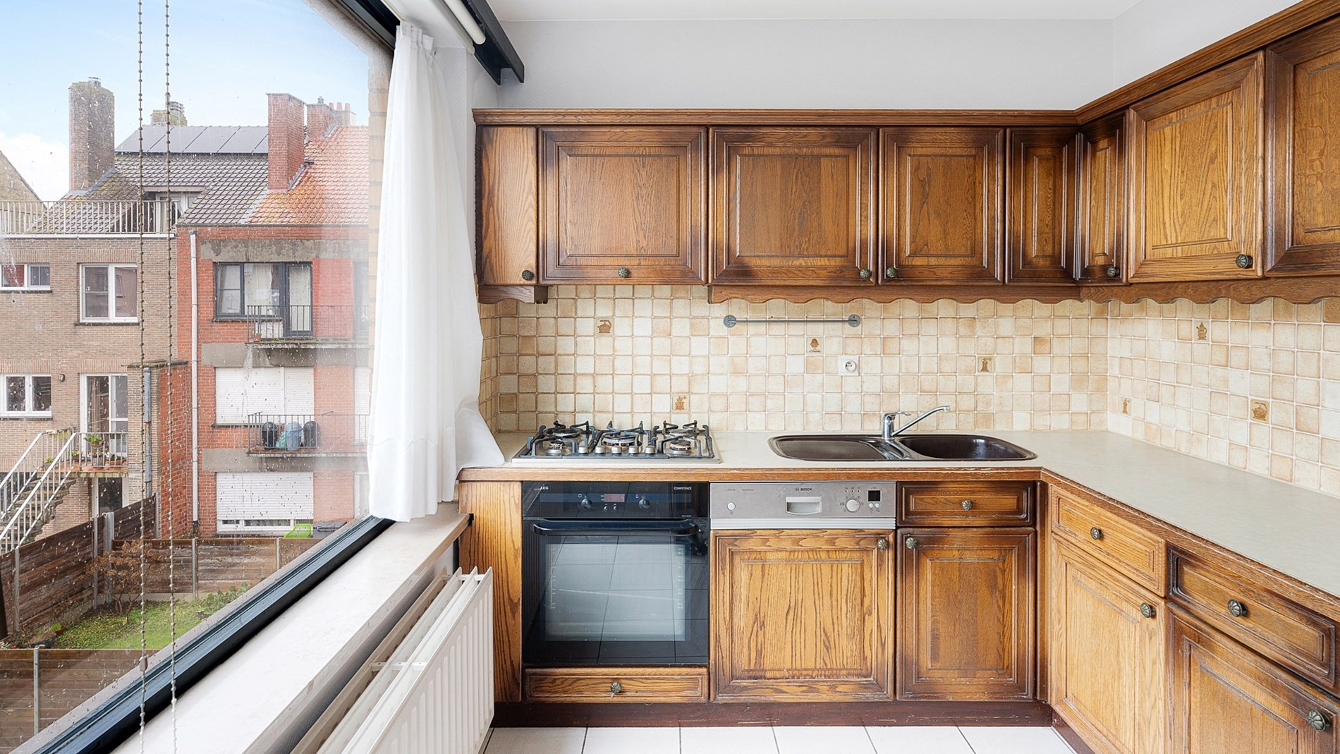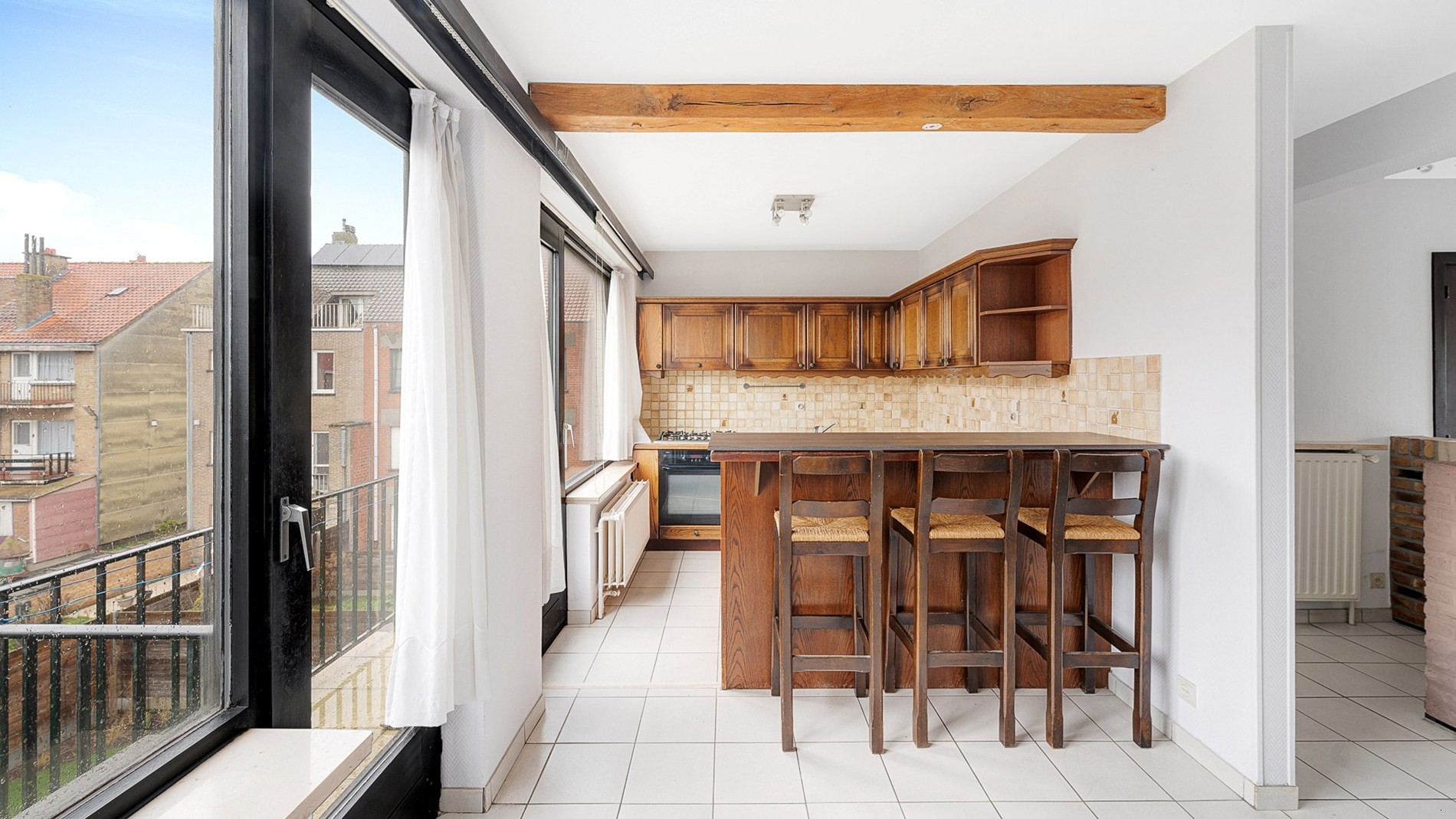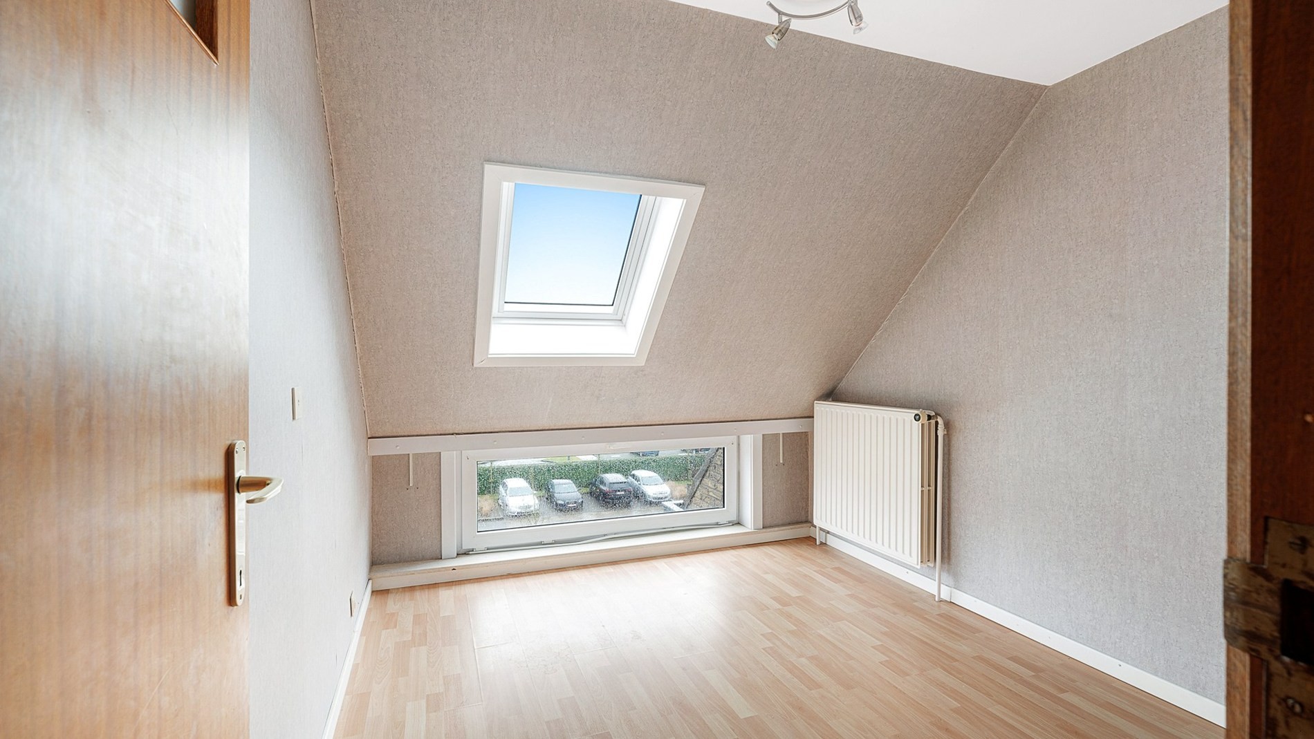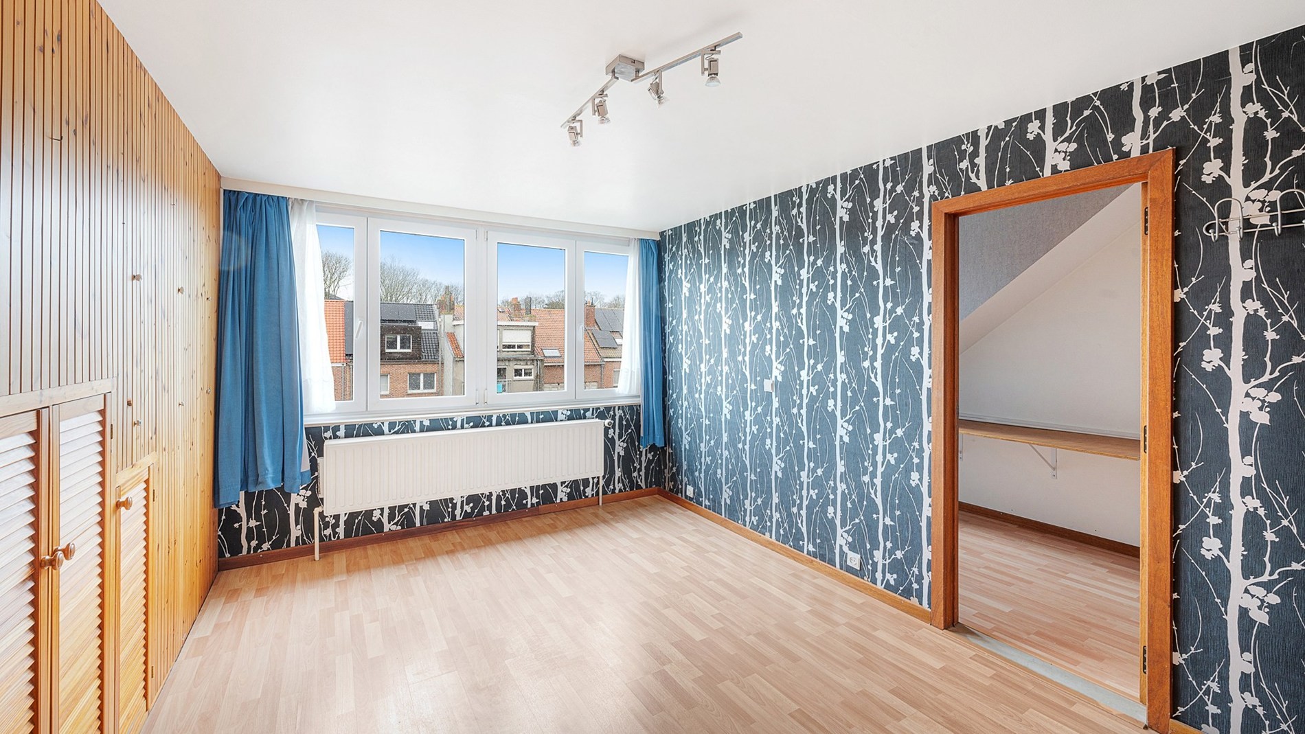 Het duplex appartement strekt zich uit over de tweede en derde verdieping en beschikt over een ruime leefruimte met terras aan de voorzijde, een volledig uitgeruste keuken en een apart gastentoilet. Op de bovenverdieping bevinden zich drie slaapkamers, waarvan één met dressing, een badkamer en een extra bergzolder.