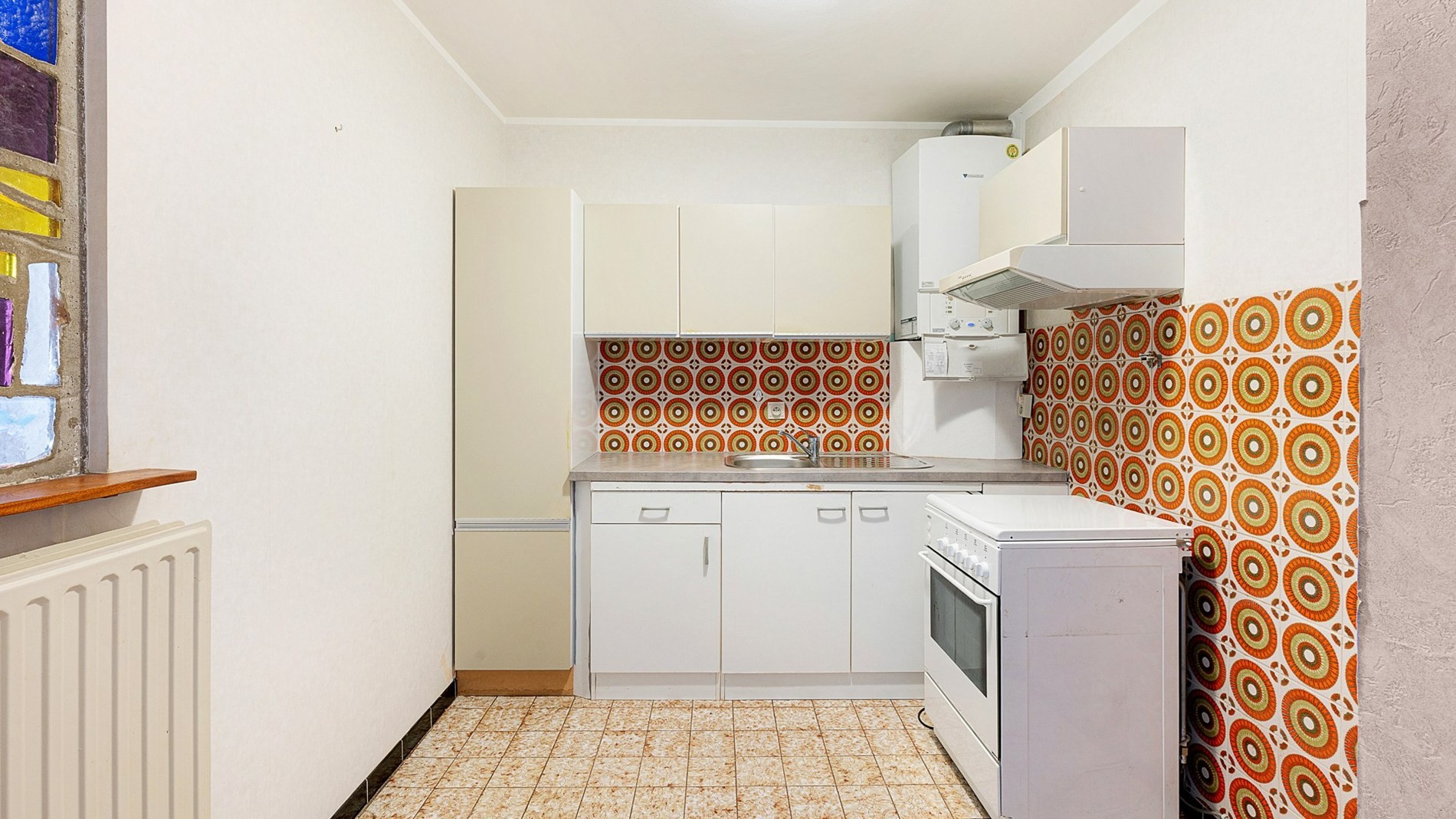 Het appartement op de eerste verdieping omvat een aangename leefruimte, een aparte keuken, twee volwaardige slaapkamers met toegang tot het terras achteraan en een badkamer.