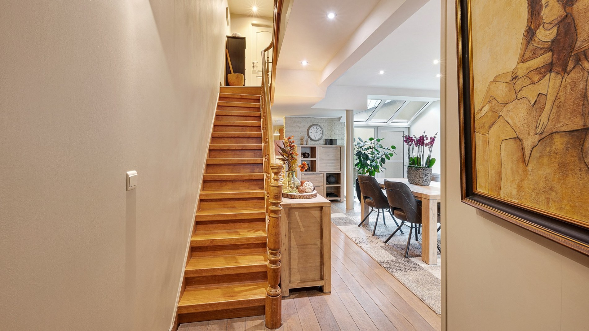Op het gelijkvloers een gezellige leefruimte met hoge plafonds en een prachtige parketvloer. De keuken is halfopen en goed uitgerust. De keuken en de leefruimte kijken uit op een klein maar gezellig stadsterras waar u kunt genieten van een aperitief of etentje. Op de eerste verdieping zijn er twee grote slaapkamers en een ingerichte badkamer met ligbad, douche en toilet. Op de nachthal tevens nog een tweede toilet. Er is een vaste trap naar de tweede verdieping die ingerichte is met slaapkamer drie en vier. De droge kelder en de geïsoleerde zolder zorgen voor voldoende bergruimte.