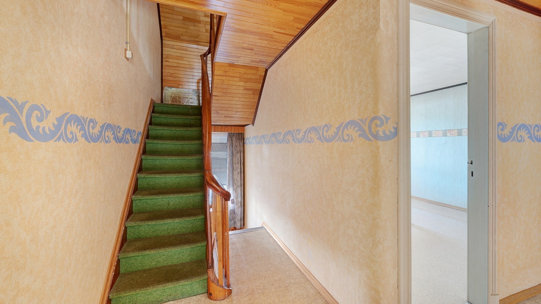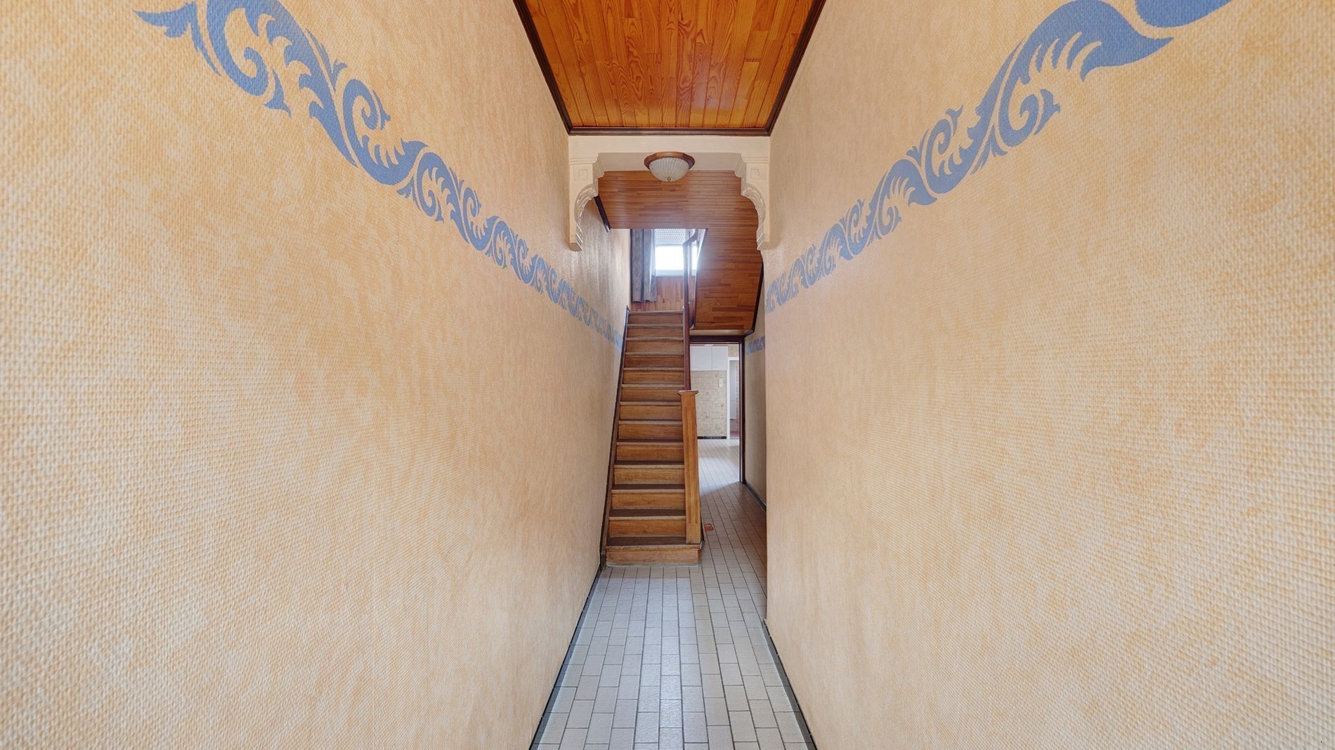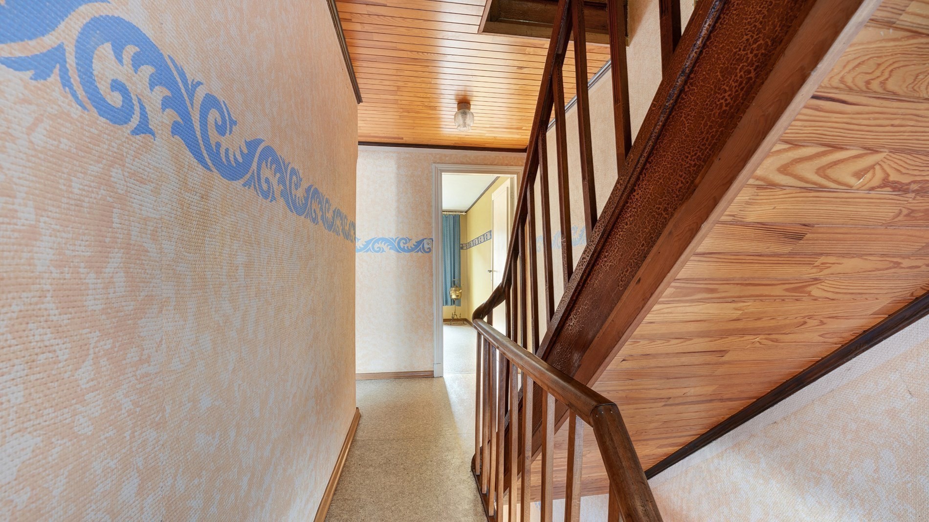 Inkom, traphal, een grote woonkamer met hoge plafonds, een achterliggende ruime keuken en een verzorgde badkamer. De stadstuin achteraan is perfect georiënteerd. Op de eerste verdieping zijn er 3 slaapkamers. Er is een vaste trap naar de dakverdieping in te richten naar de wensen van de koper. Er is voldoende ruimte voor een grote 4de slaapkamer of zelf 2 extra slaapkamers.