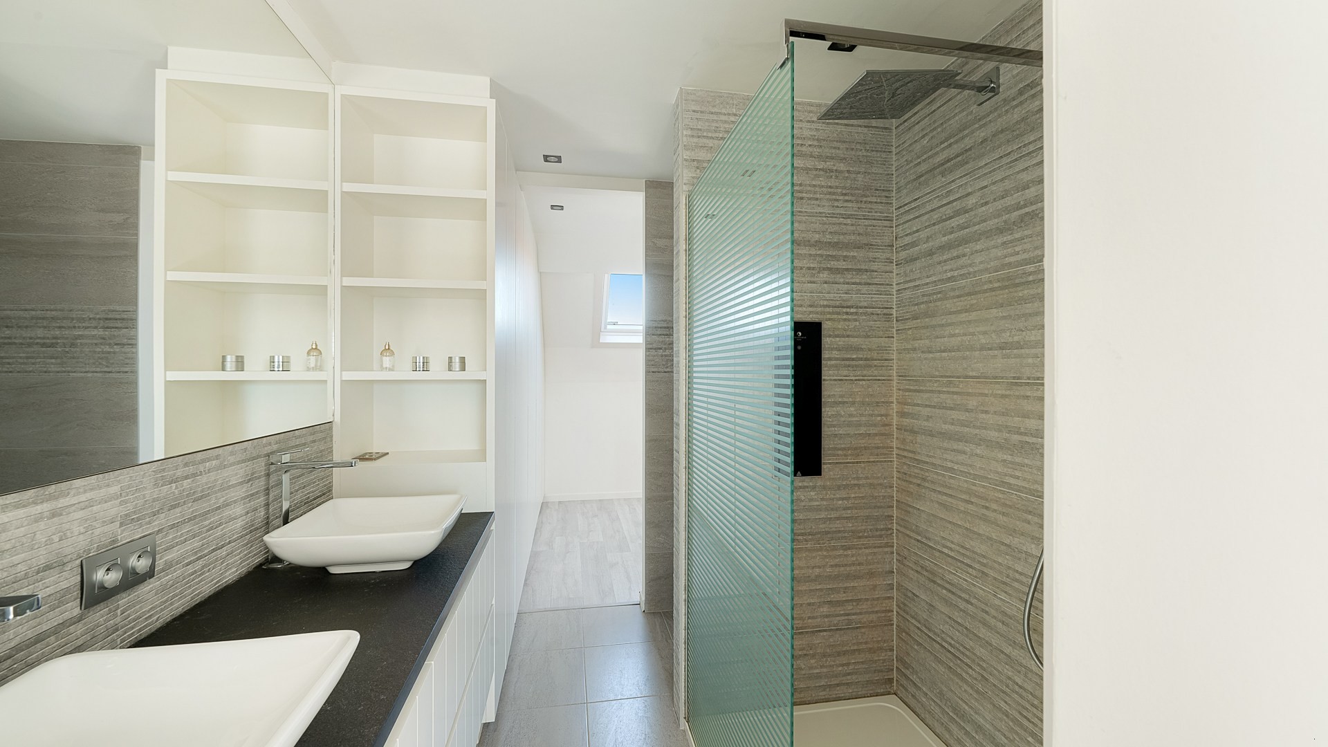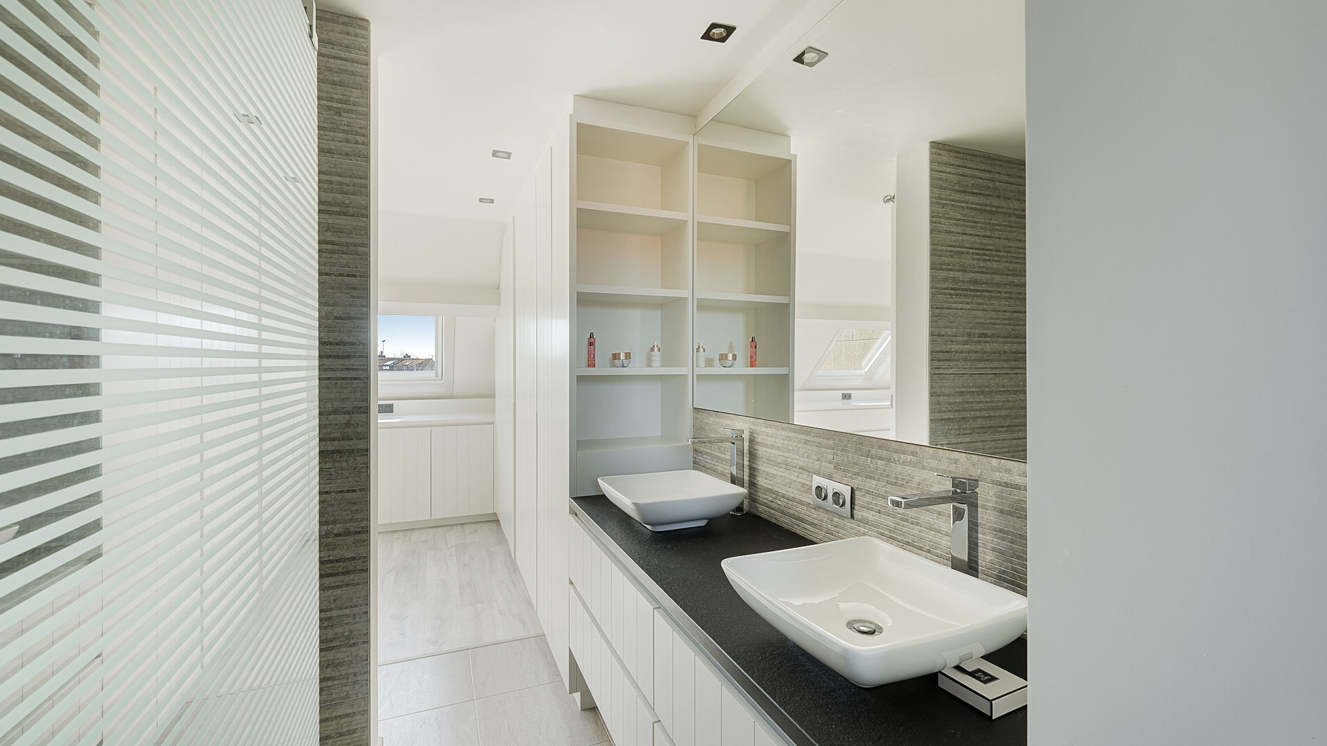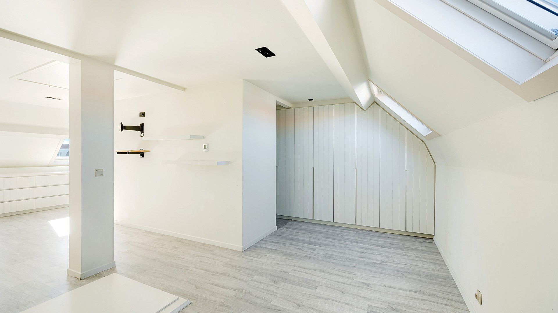 Grote inkomhal met een aparte berging voor WM/DK. Via de inkomhal komt u terecht in een enorme leefkeuken voorzien van een kook- en eeteiland. Aansluitend een grote living met raampartijen over de volledige breedte wat zorgt voor veel licht en een leuke connectie met de tuin. Op de eerste verdieping een veelzijdige ruimte die kan dienen als tv- of leeshoek, of als bureau voor thuiswerk. Verder nog 2 slaapkamers, een badkamer en een apart toilet op deze étage. Vaste trap naar de tweede verdieping waar u terechtkomt in een prachtige masterbedroom met zijn eigen privé-badkamer. Als laatste nog een grote opbergzolder onder de nok.