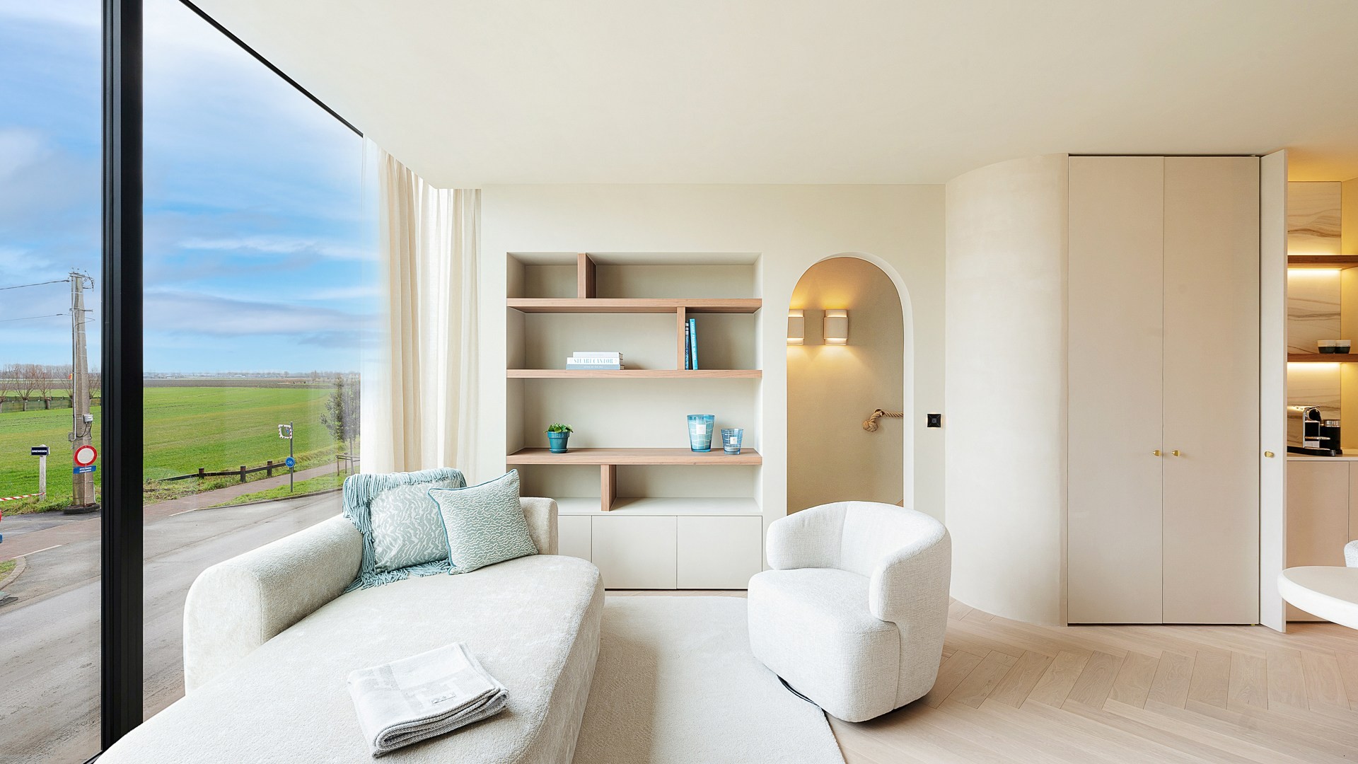 Op de eerste verdieping bevindt zich een indrukwekkende en zonnige leefruimte met een open keuken, eetplaats en een gezellige zithoek. Zowel aan de voor- als achterzijde geniet u van een mooi open uitzicht op de tuin en de overliggende weilanden. Vanuit de leefkeuken is er directe toegang tot een ruim en sfeervol overdekt terras, voorzien van een vaste zitbank – een heerlijke plek om het hele jaar door te genieten.
