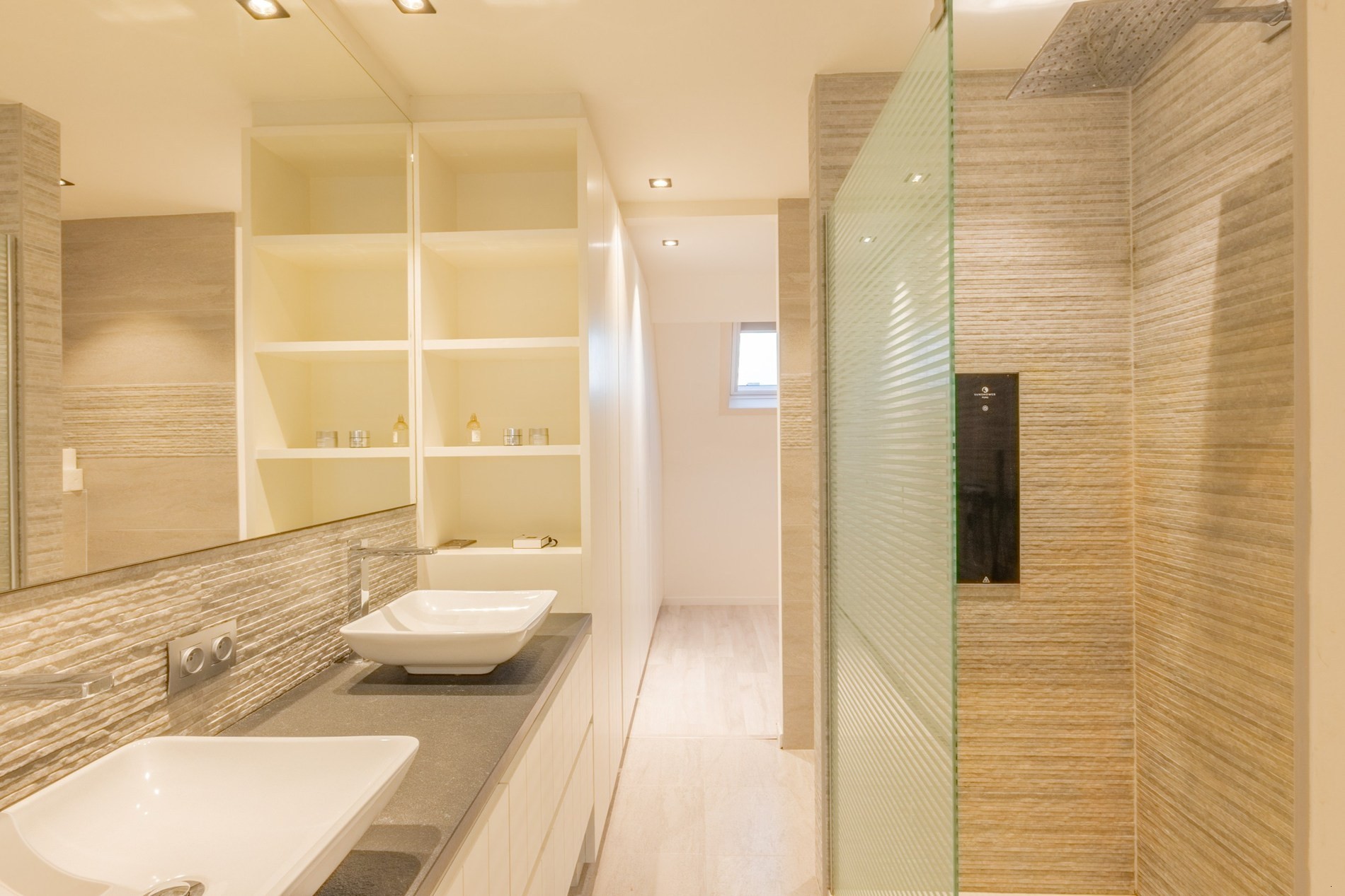 Grote inkomhal met een aparte berging. Via de inkomhal komt u terecht in een enorme leefkeuken voorzien van een kook- en eeteiland. Aansluitend een grote maar uiterst gezellige living met een vrije plafondhoogte van 5m60. Een absolute eye-catcher. De living is ruim en voorzien van raampartijen over de volledige breedte wat zorgt voor veel licht en een leuke connectie met de tuin. Op het mezzanine-verdiep (+1) een multifunctionele ruimte die kan dienen als bureau of leeshoek. Verder nog 2 slaapkamers, een badkamer en een apart toilet op deze étage. Vaste trap naar de tweede verdieping waar u terechtkomt in een prachtige masterbedroom met zijn eigen privé-badkamer. Als laatste nog een grote zolder met mogelijkheden.