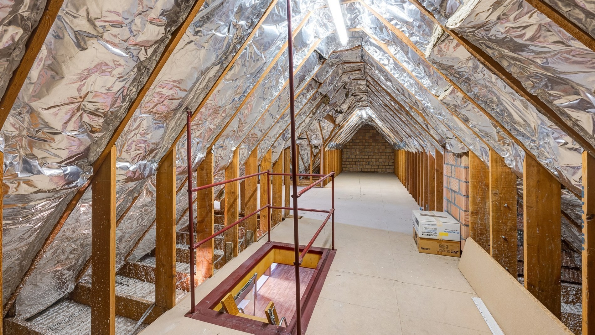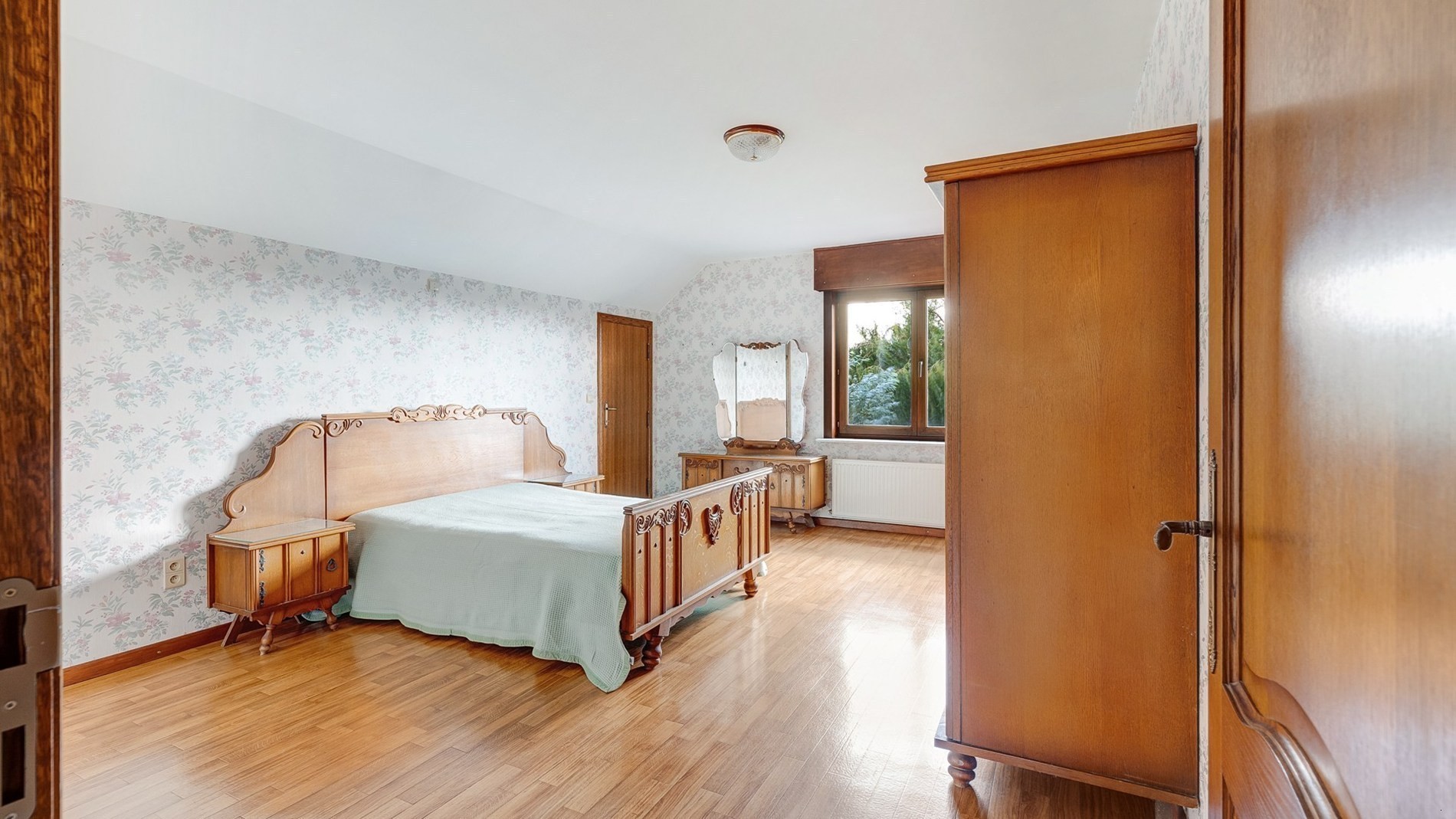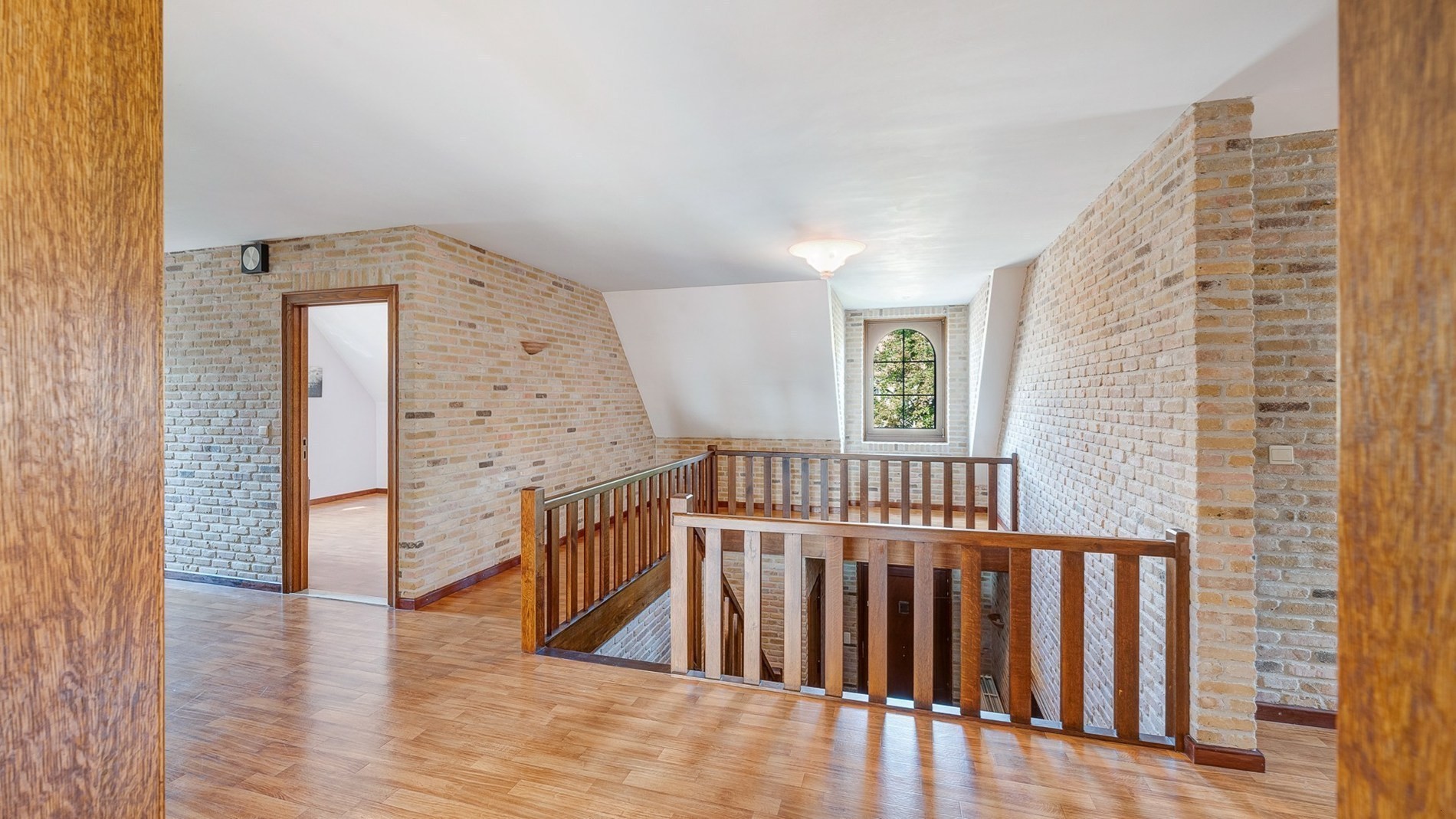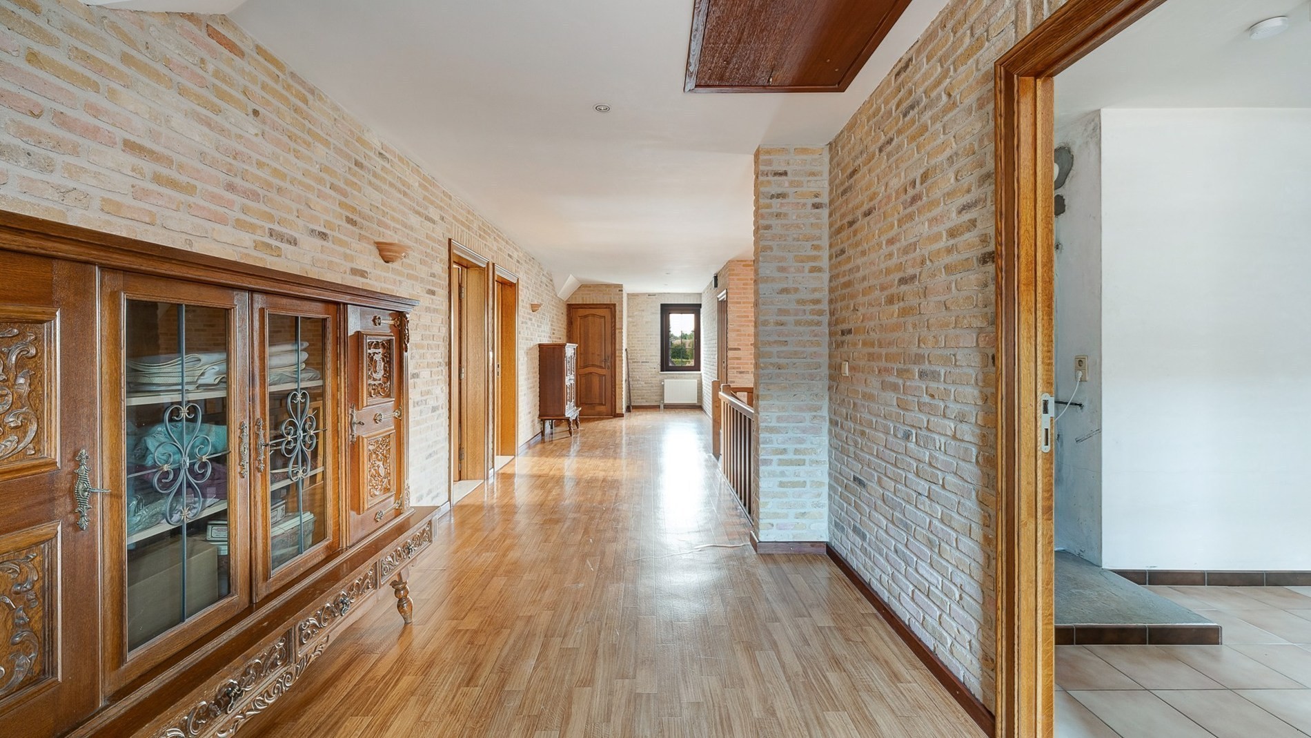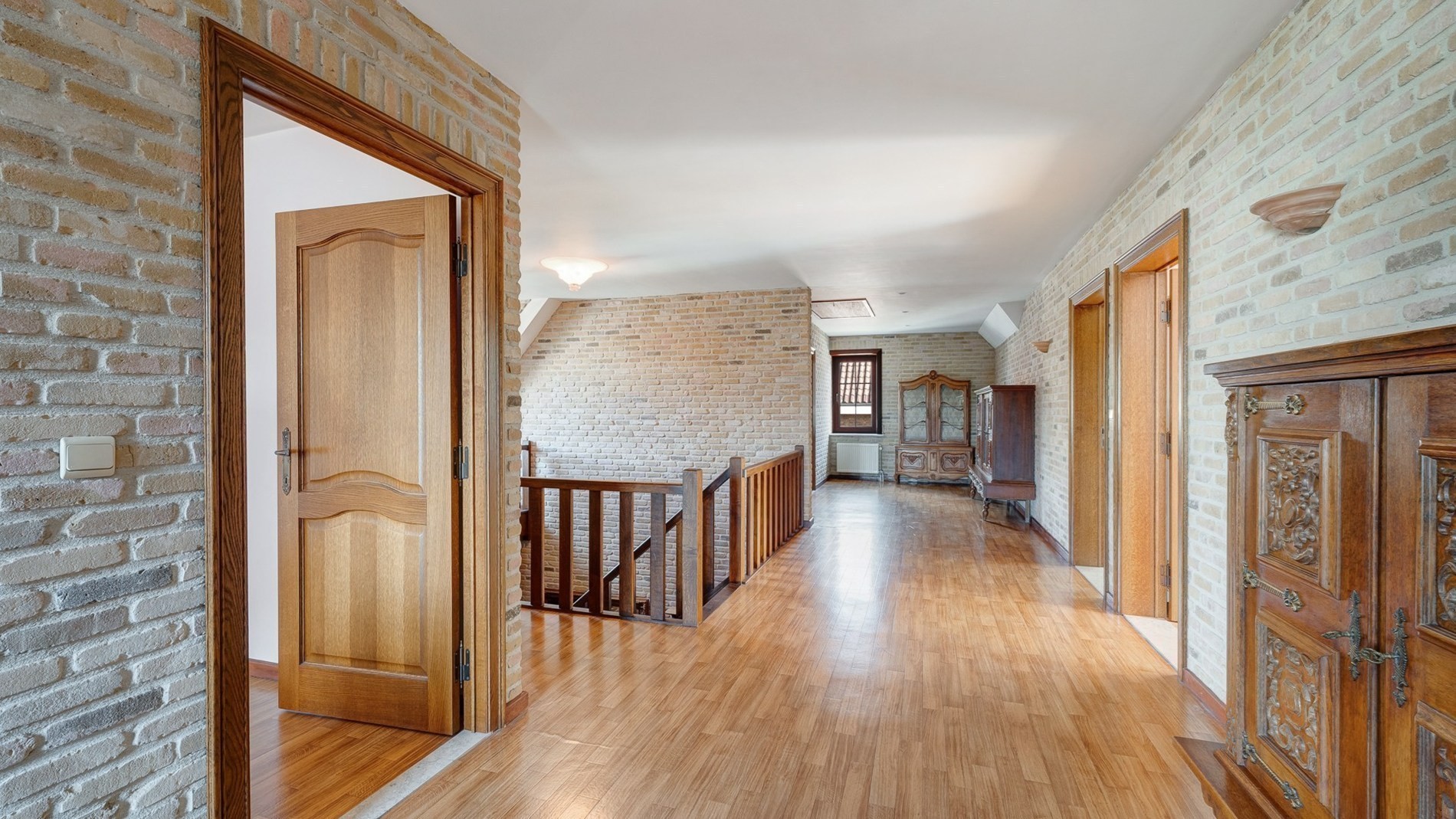 Op de verdieping een royale nachthal, drie of vier extra grote slaapkamers en/of eventueel een ruimte ideaal voor het inrichten van een tweede badkamer en een apart toilet. Een volwaardige zolderverdieping met de mogelijkheid tot het inrichten van extra slaapkamers/hobbykamer of bureelruimtes.