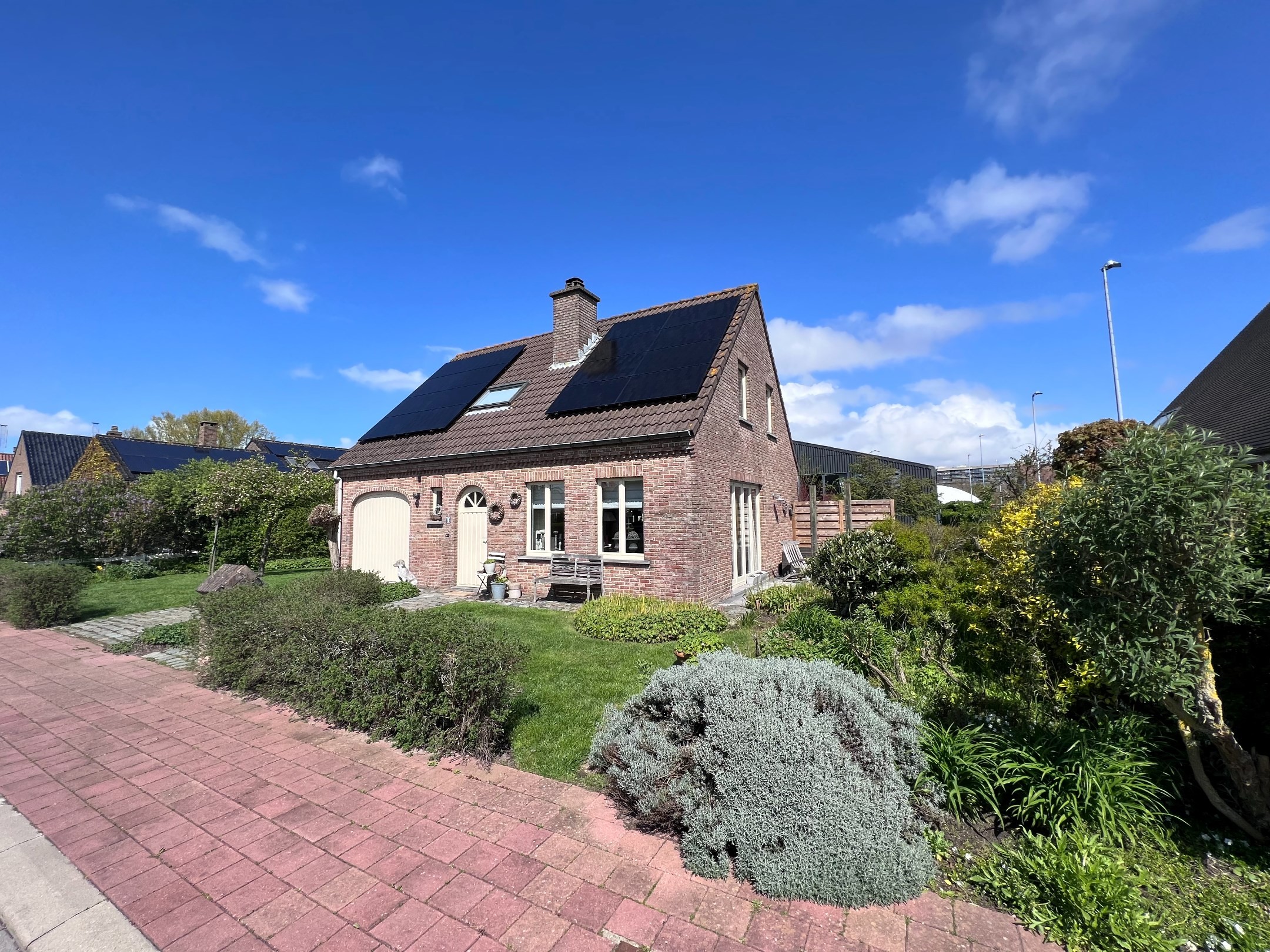 De inkomhal is voorzien van een ingebouwde vestiairekast en een gastentoilet, een gezellige en grote woonkamer met parketvloer en open haard. Het gelijkvloers met de keuken en de living werd mooi uitgebouwd en geniet van mooie zichten op de tuin. De keuken is halfopen, volledig ingericht en voorzien van een leuke eetplaats. Op het gelijkvloers verder nog een grote garage met elektrische poort en een bergruimte/wasplaats. Op de verdieping zijn er 3 volwaardige slaapkamers en een ingerichte badkamer met extra toilet. Zolder aanwezig.