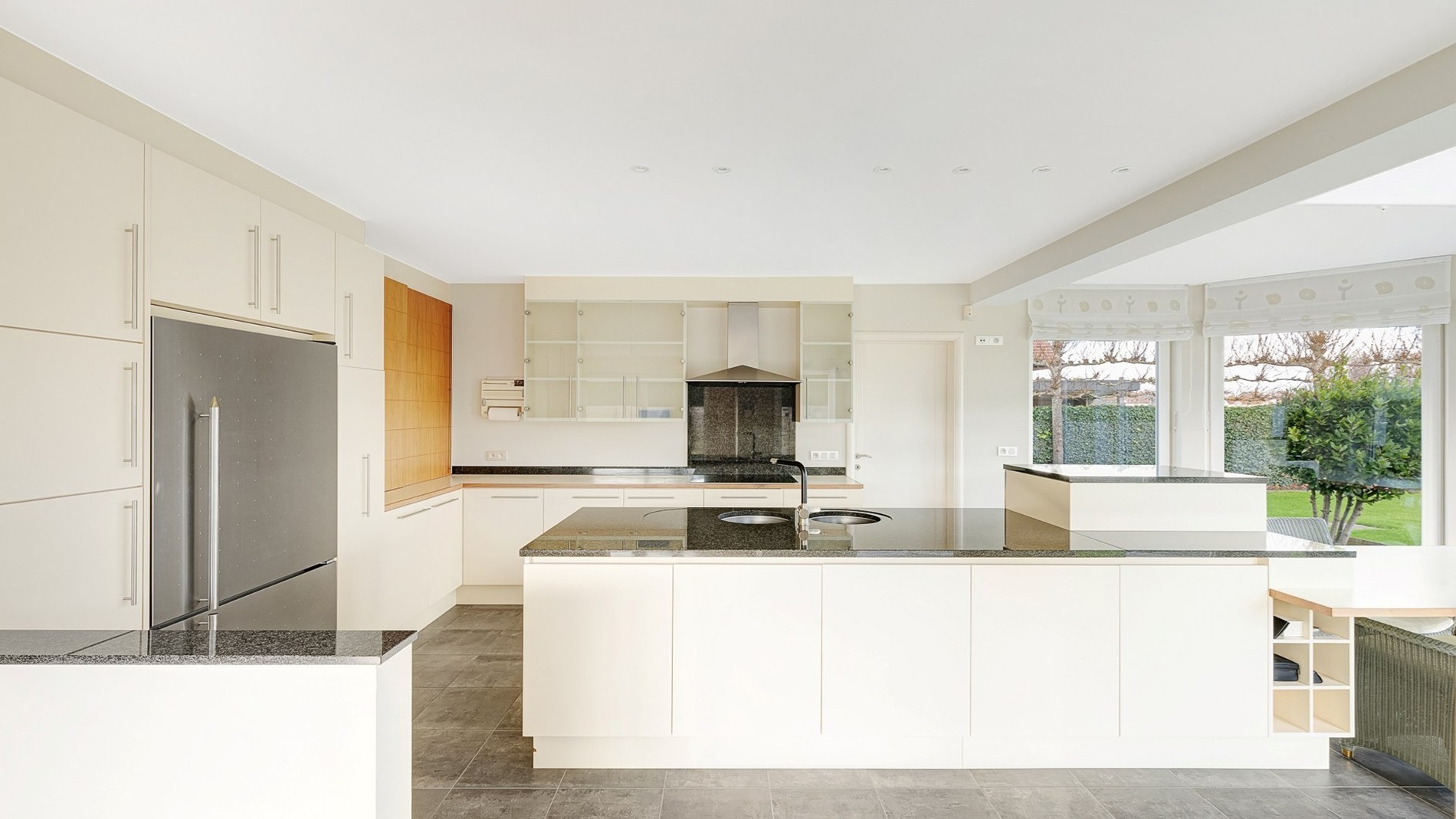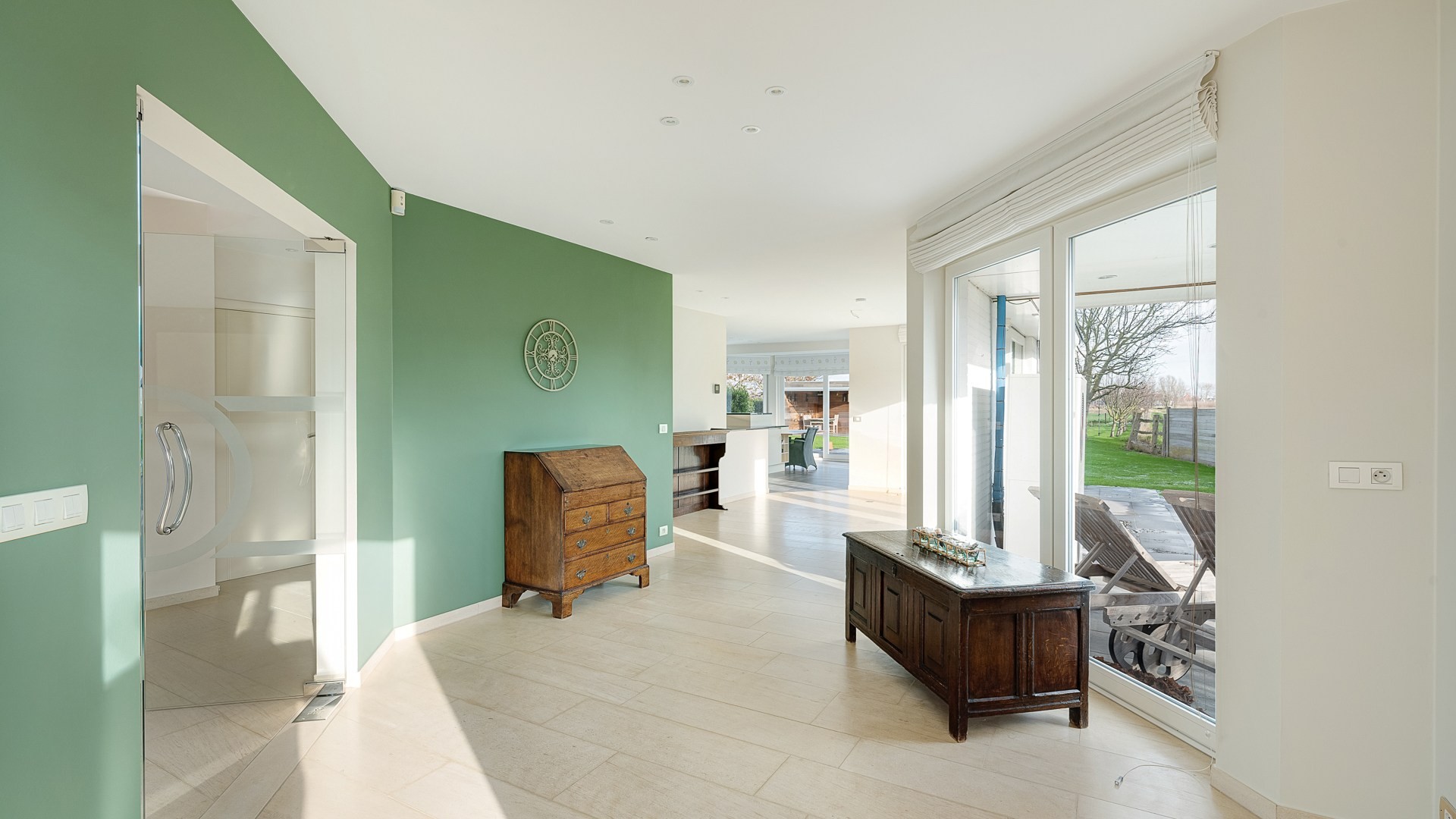 Zo kunt u genieten van 34 zonnepanelen en wordt de villa verwarmd a.d.h.v. een warmtepomp, gekoppeld aan de vloerverwarming (zowel beneden als boven).
