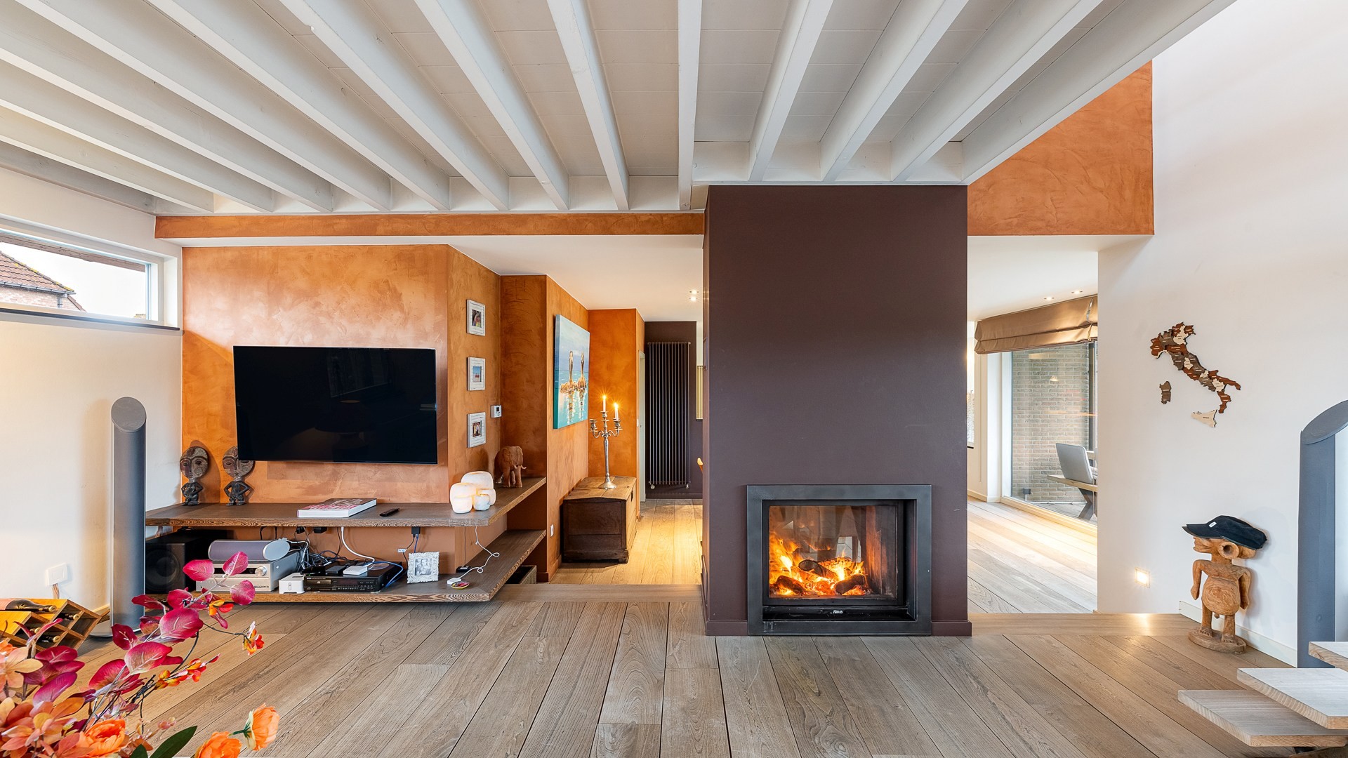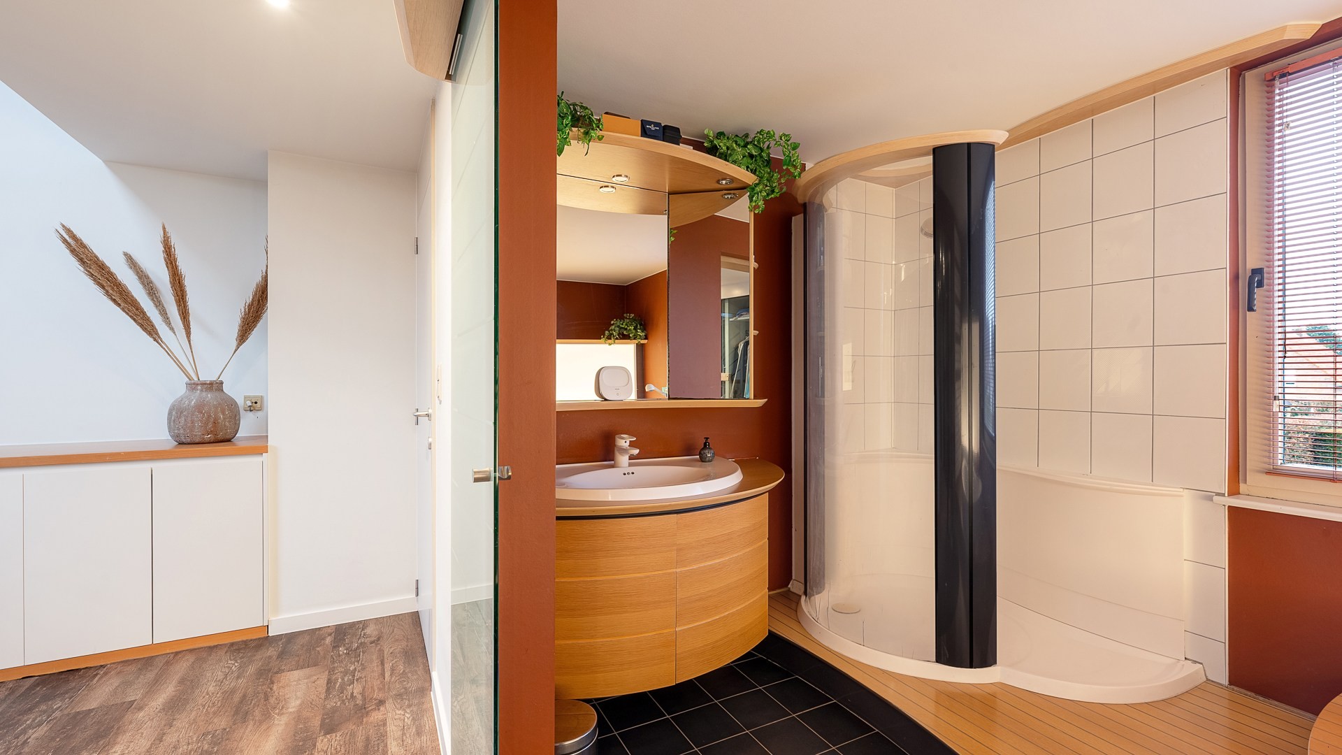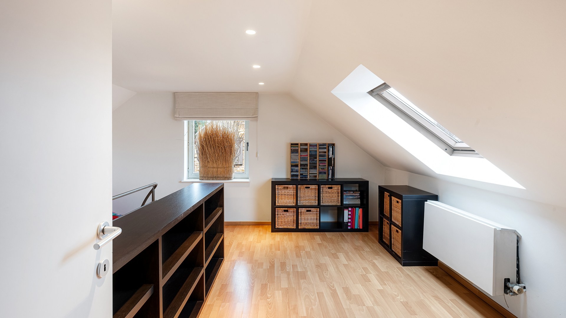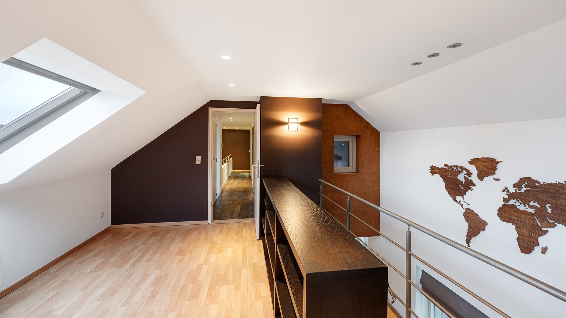Op de eerste verdieping bevinden zich drie slaapkamers en twee badkamers. De master bedroom geniet van een eigen badkamer, terwijl de overige slaapkamers gebruikmaken van een aparte douchekamer. Boven de leefruimte bevindt zich een mezzanine, bereikbaar via een aparte trap en flexibel in te richten volgens de wensen van de bewoner. De woning beschikt over een volwaardige dakverdieping met een vierde slaapkamer en een zeer ruime zolder, ideaal als extra opslag of hobbyruimte.