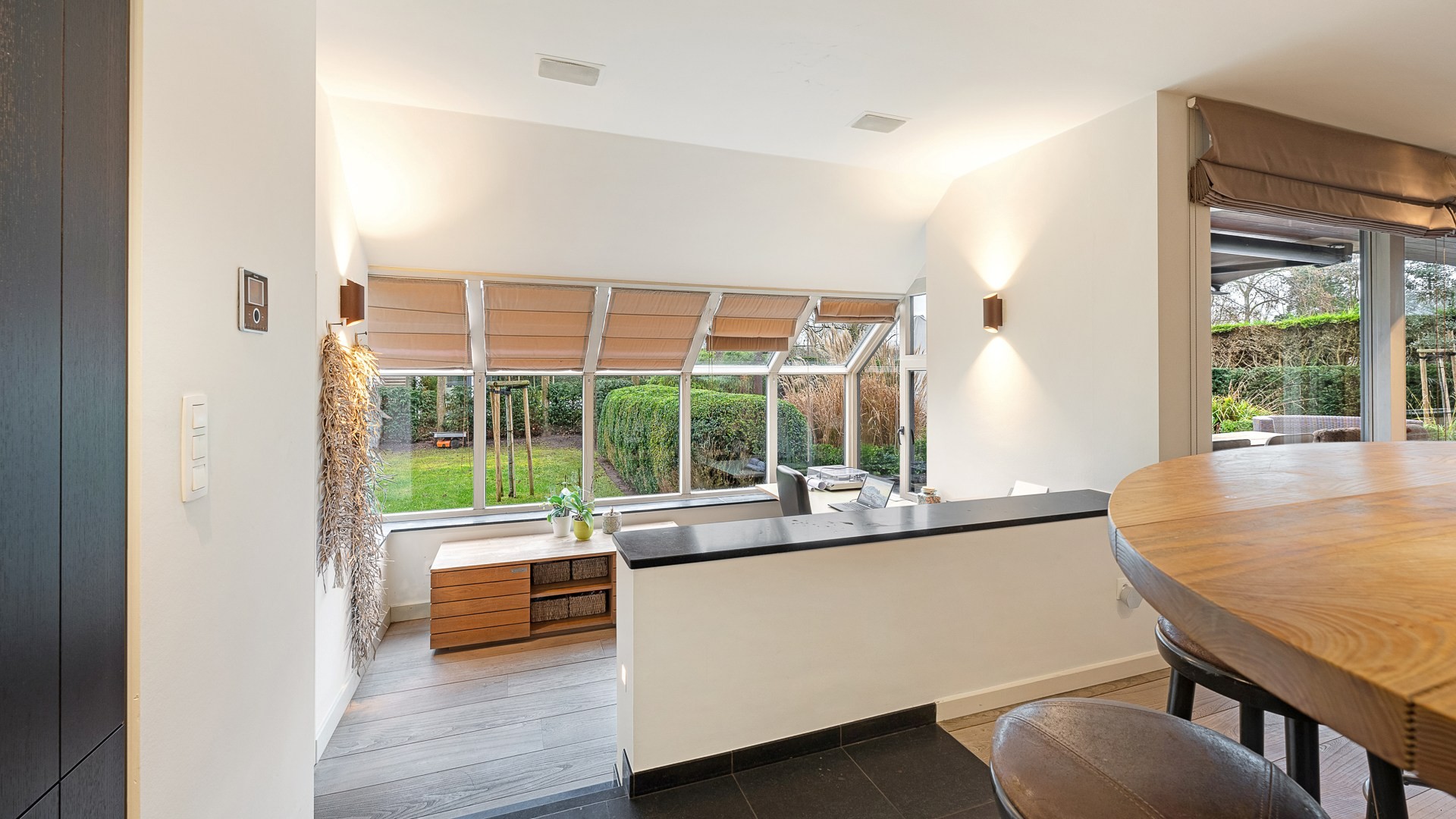Een prachtige achterliggende tuin vol in de zon. Rust en privacy zijn gegarandeerd. Parkeren op het eigen terrein of in de garage.