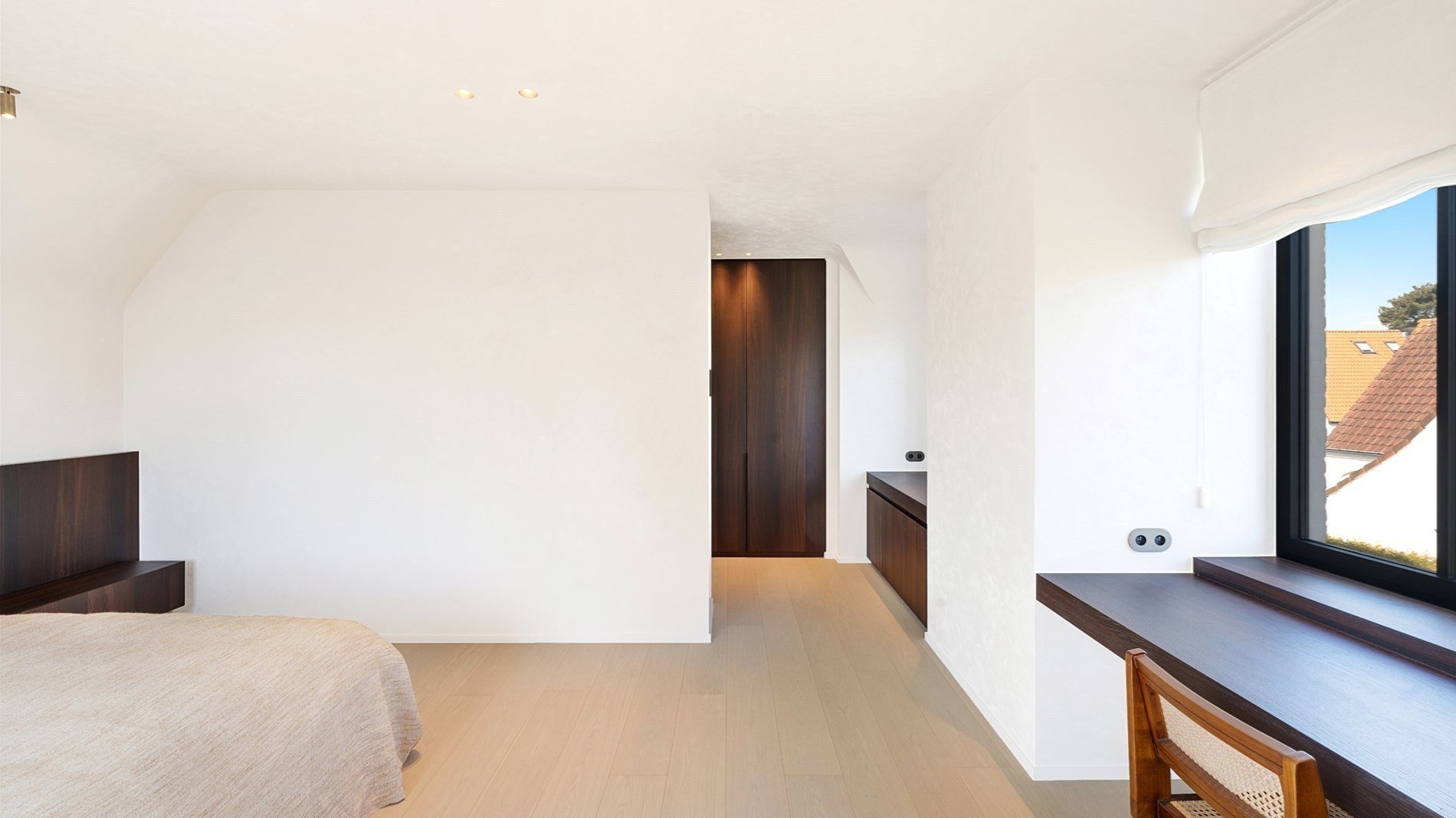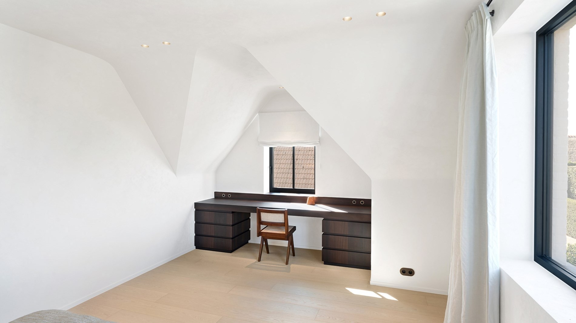 Op de verdieping 4 grote slaapkamers en 3 badkamers. Elke slaapkamer beschikt over ingemaakte kasten. Twee slaapkamers beschikken over een eigen luxe badkamer en de twee overige slaapkamers delen nog een gemeenschappelijke douchekamer. Zolder als extra bergruimte.