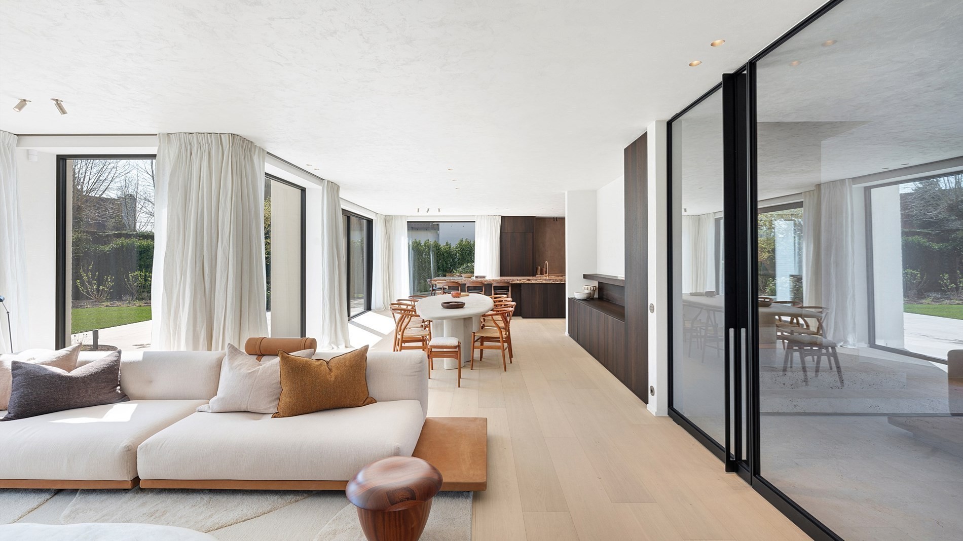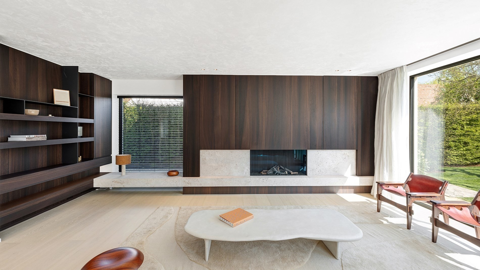 Indeling van de villa: inkomhal met personenlift, gastentoilet en een op maat gemaakte vestiaire. De woonkamer is royaal van afmetingen en kijkt mooi uit op de prachtig aangelegde tuin. In de leefruimte een mooi ingewerkte open haard, parketvloeren en veel maatkasten. Alles smaakvol afgewerkt. Verder een indrukwekkende keuken met prachtig werktablet, Miele toestellen, ingebouwde wijnfrigo en veel kastruimte. De keuken loopt uit in een functionele bijkeuken/wasplaats volledig voorzien van maatkasten. Aansluitend nog de garage.