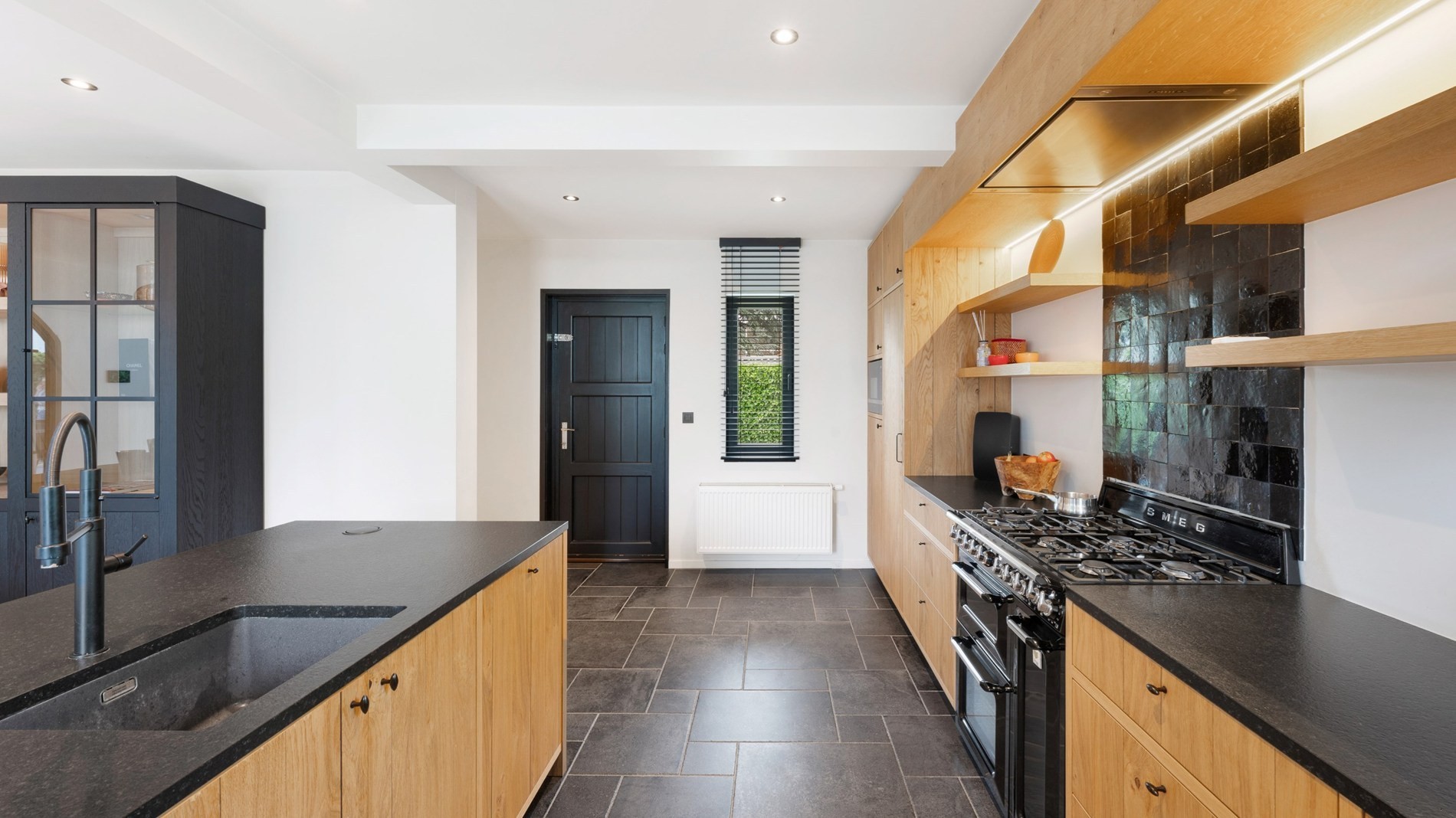 Indeling van het huis: inkom met gastentoilet, een grote en gezellige leefruimte met een open haard, een luxueus ingerichte keuken met eiland, bijkeuken/wasplaats en een inpandige garage met automatische poort. Zowel de keuken als de woonkamer sluiten mooi aan op het zonneterras. Op de verdieping zijn er 3 slaapkamers en een volledig ingerichte badkamer. De masterbedroom beschikt over een mooi losstaand bad. Rondom de villa een verzorgde tuin met zonneterras en en een grote tuinberging. Parkeren kan op het eigen terrein of in de garage.