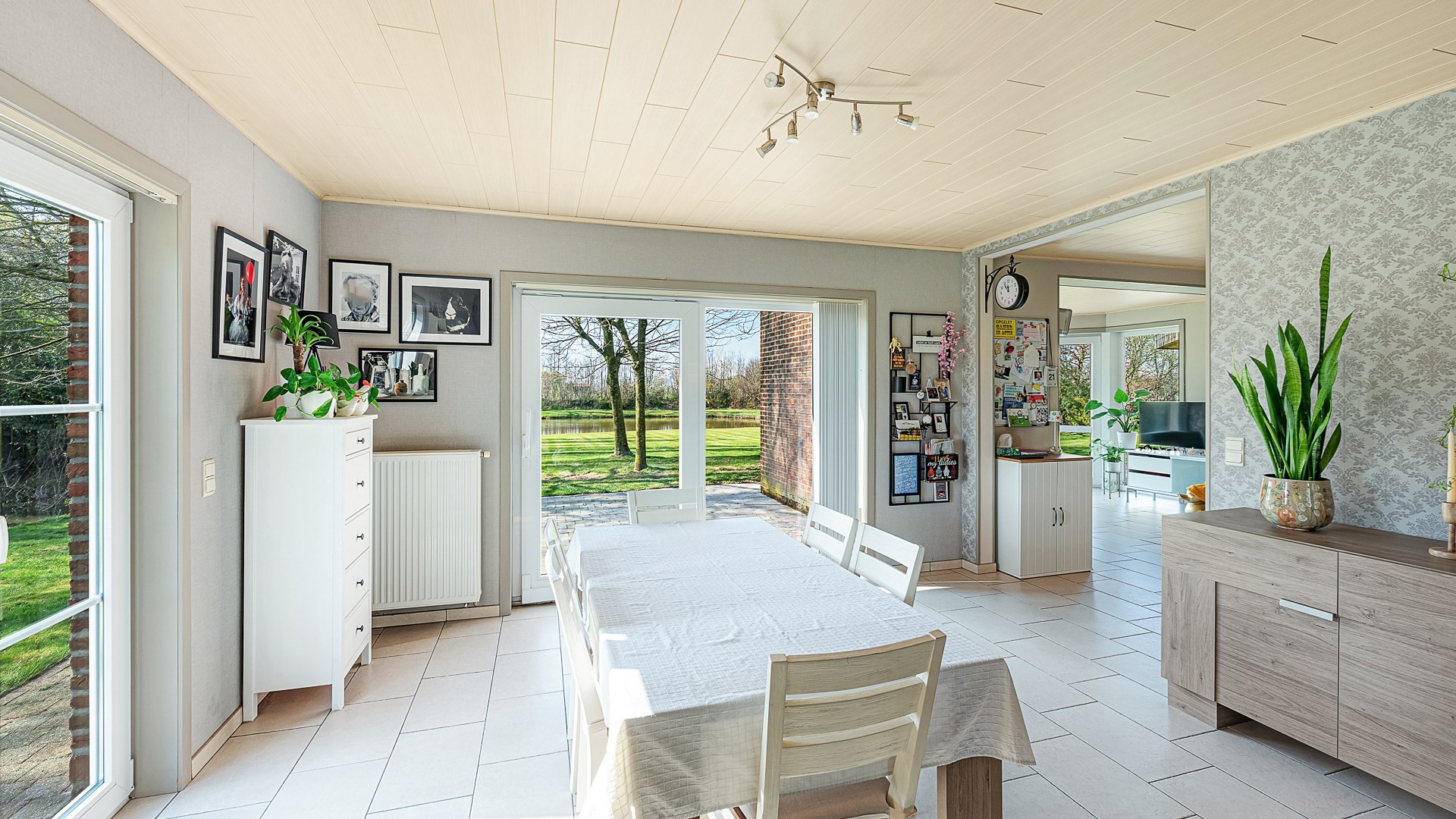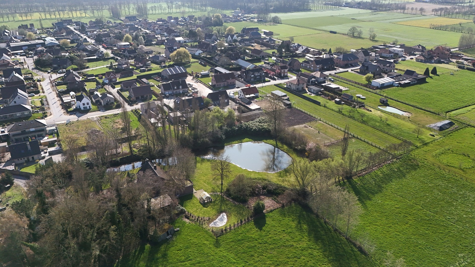 De fraai aangelegde tuin vormt een absolute troef, met als blikvanger een imposante vijver — een uniek en rustgevend element dat deze eigendom een bijzonder karakter geeft.