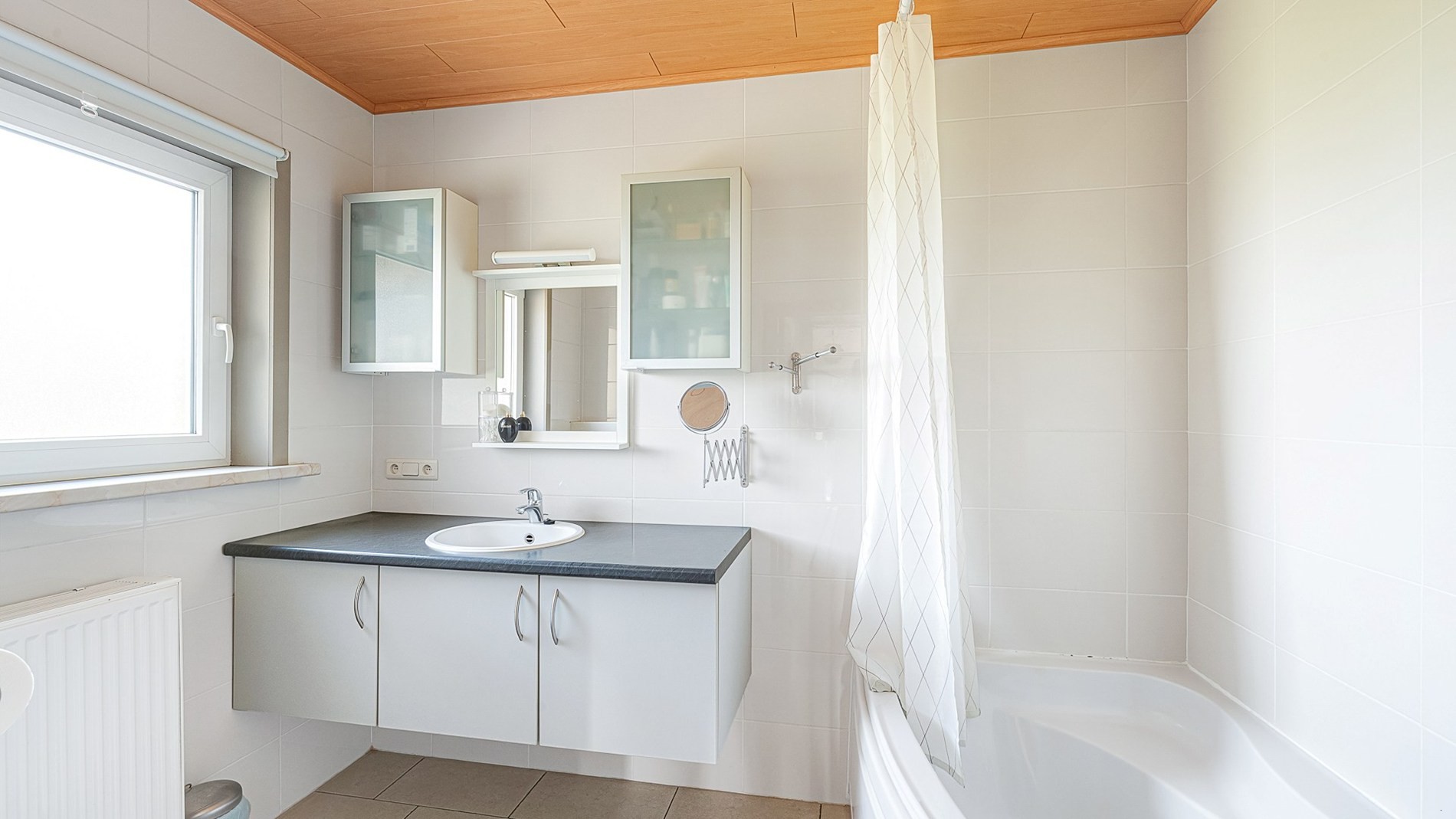 De woning, met een bewoonbare oppervlakte van 270m², omvat vier volwaardige slaapkamers, waaronder één op het gelijkvloers. Op het gelijkvloers vindt u tevens een ruime badkamer, een lichtrijke leefruimte met eet- en zithoek die uitkijkt op de prachtige tuin, en een open keuken met hetzelfde groene uitzicht. Op de verdieping zijn er drie grote slaapkamers en een tweede badkamer.