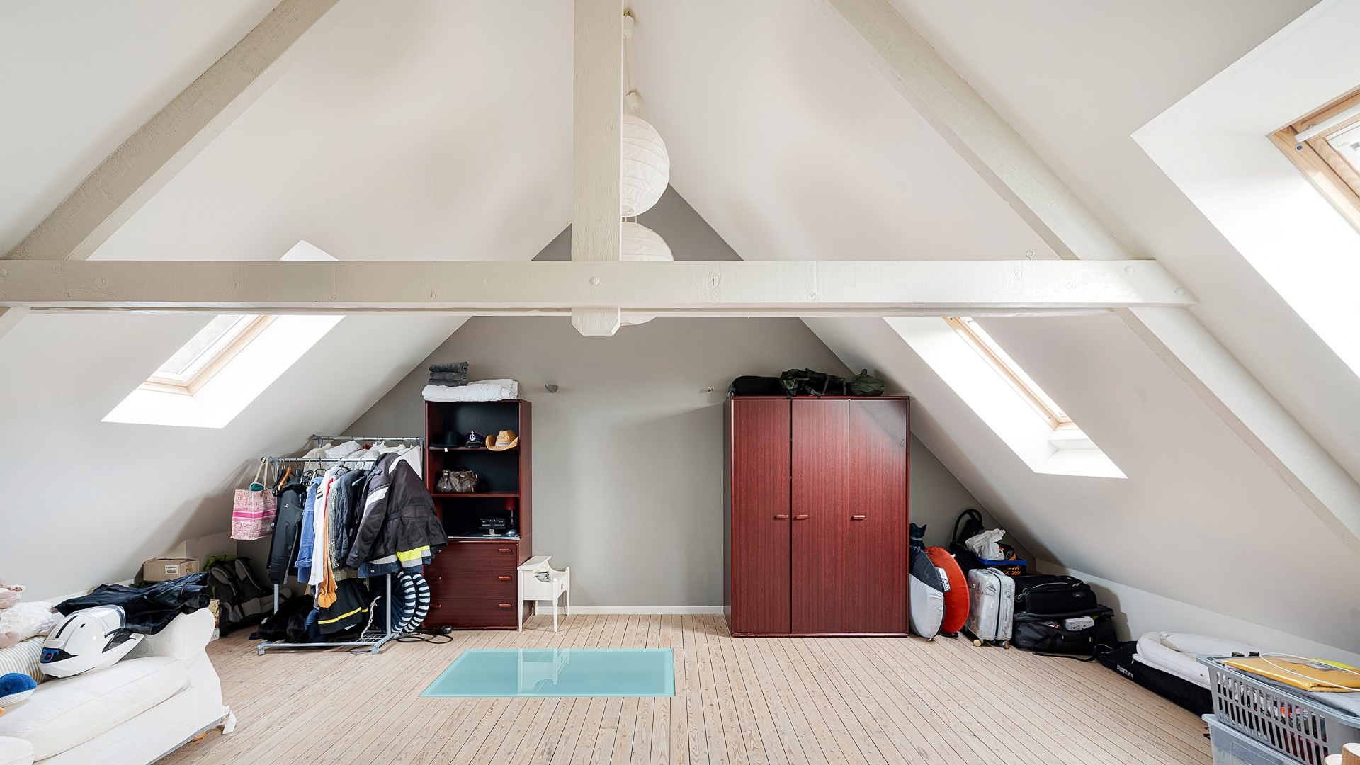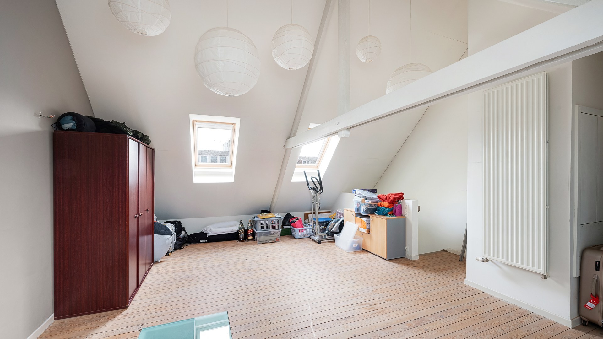 De zolder biedt tal van mogelijkheden en kan eenvoudig worden omgevormd tot een grote masterbedroom, eventueel met het creëren van een extra badkamer.