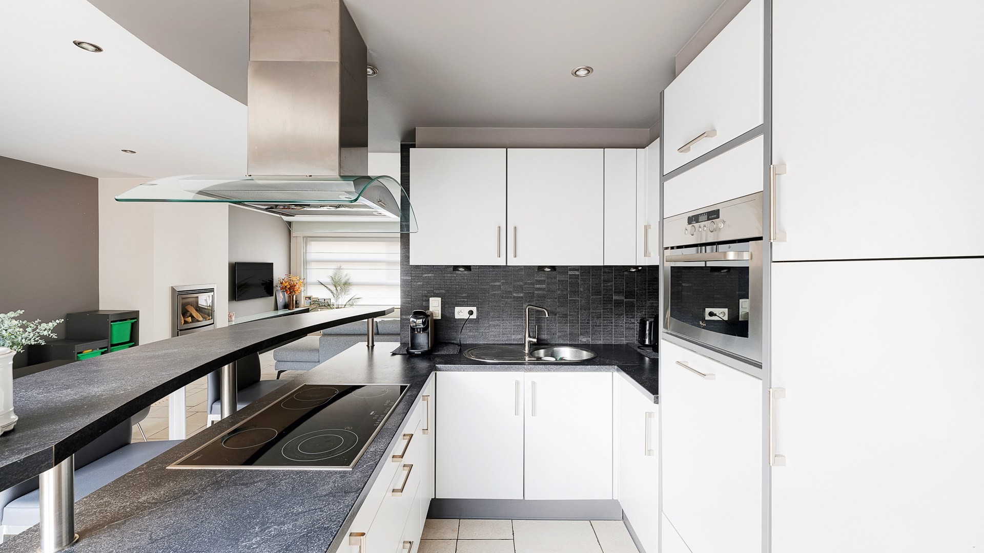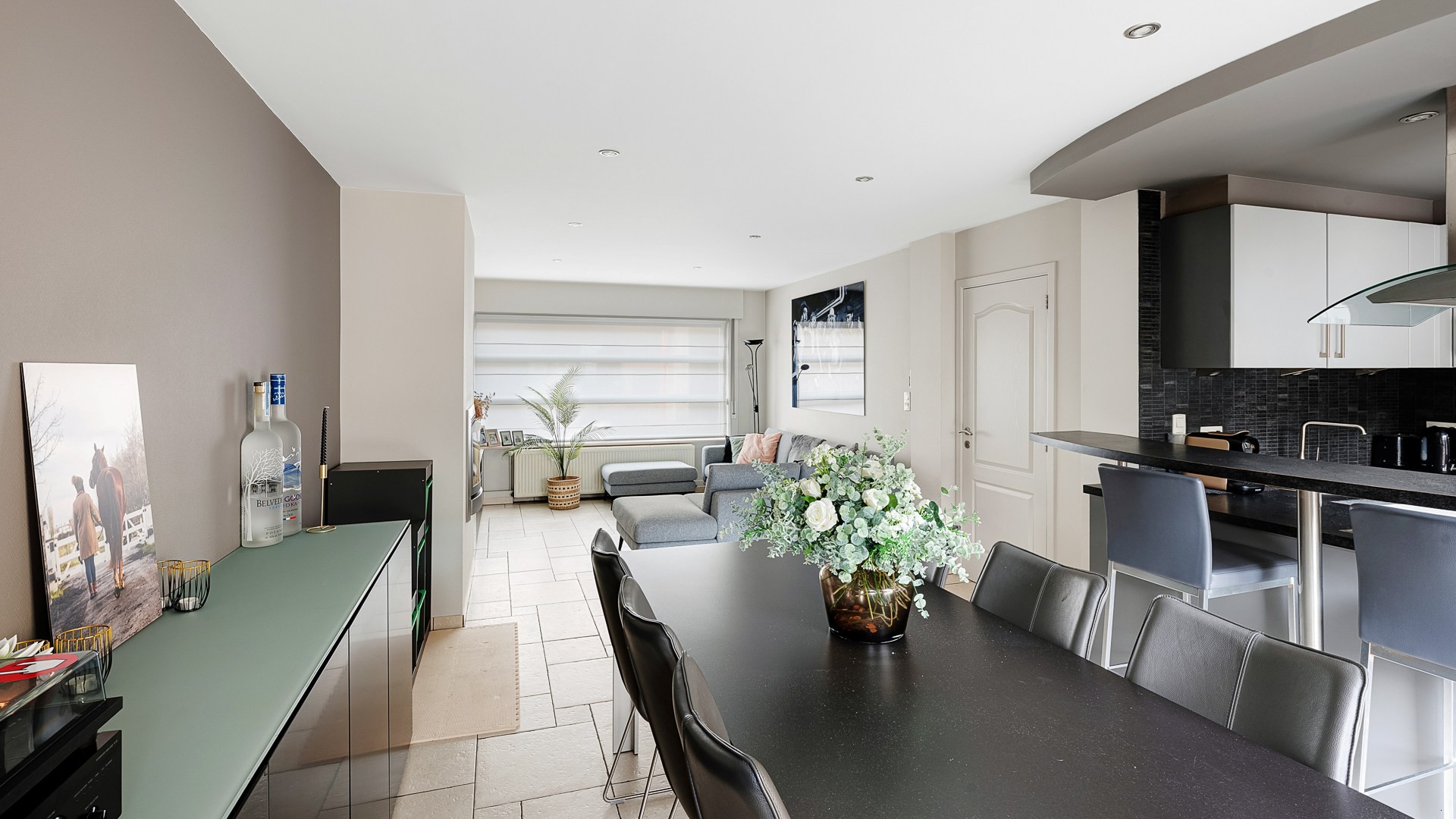 Bij het betreden van de woning komt u in de ruime en lichtrijke woonkamer met open keuken, volledig uitgerust met alle hedendaagse toestellen. Aansluitend bevindt zich een praktische berging met aansluiting voor wasmachine en droogkast.