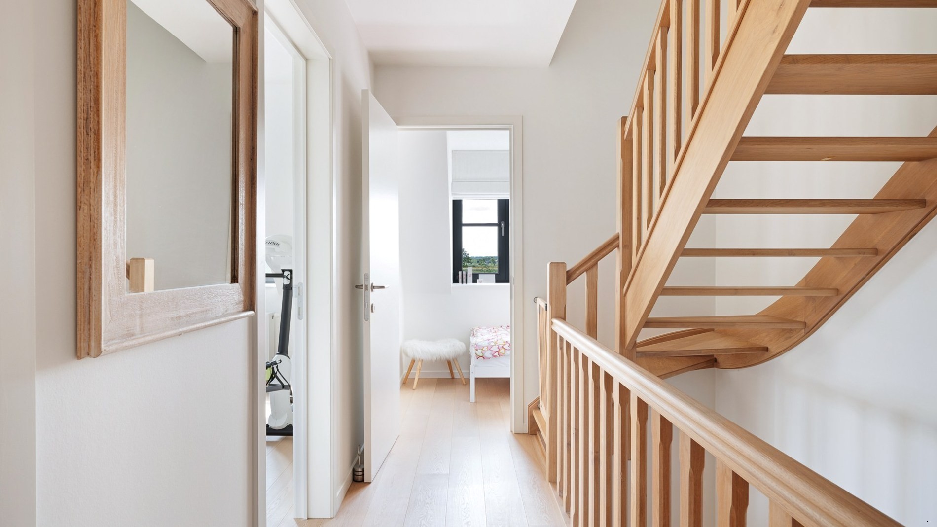 De dakverdieping is een absolute meerwaarde: een prachtig, volwaardig verdiep dat kan dienen als vijfde slaapkamer, maar evengoed als hobbyruimte, bureau of thuiswerkplek.