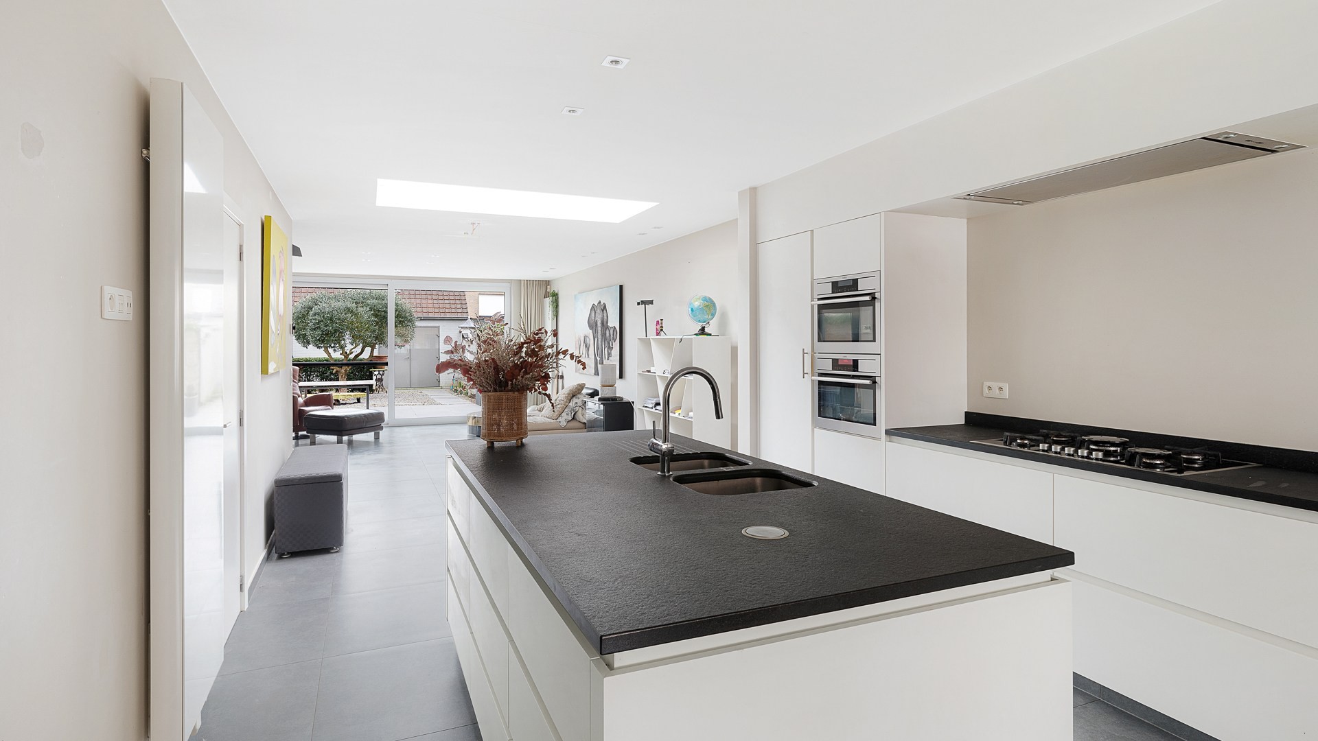 Inkomhal met gastentoilet, een mooie leefkeuken met eiland en een subtiel geïntegreerde bureauruimte, een grote woonkamer met leuke zichten op de tuin, een grote berging met inbouwkasten en een aparte wasplaats. Op de verdiepingen boven kunt u genieten van 3 slaapkamers, 2 badkamers en 2 toiletten.