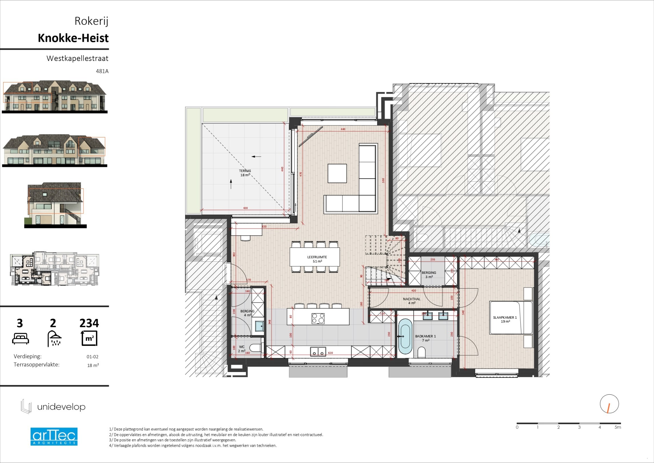 De woning beschikt over een private inkom en ontvouwt zich over twee volwaardige niveaus. De leefruimte is bijzonder royaal opgevat en baadt in het licht dankzij de grote raampartijen. De open keuken sluit hier naadloos op aan en vormt samen met de leefruimte het hart van de woning. Aansluitend bevindt zich een ruim terras van ca. 18 m², waar het aangenaam vertoeven is in alle rust.