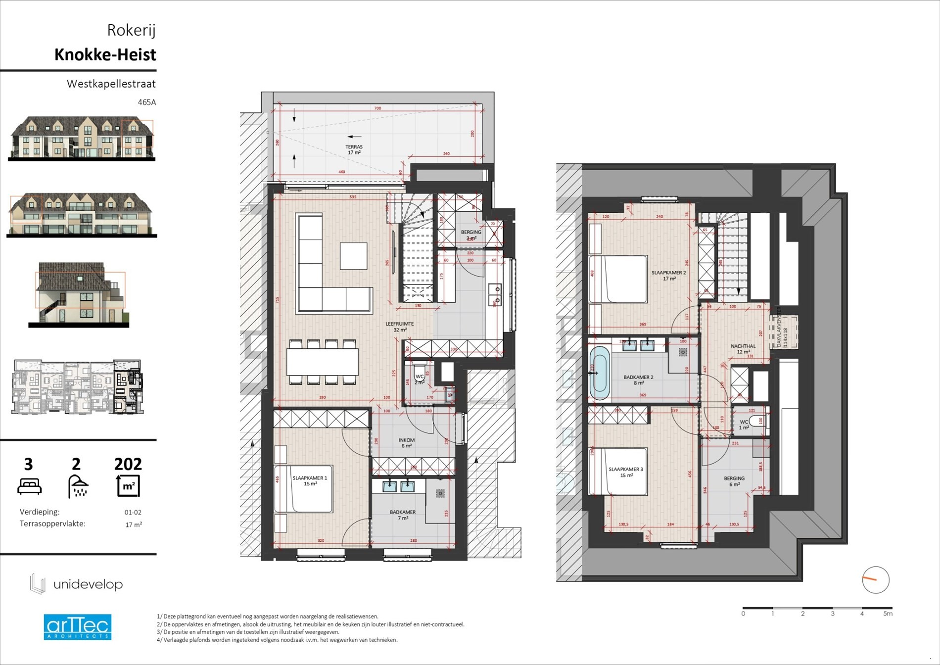 De bovenverdieping omvat nog twee ruime slaapkamers, een tweede badkamer, een afzonderlijk toilet en extra bergruimte. Deze indeling maakt de duplex bijzonder geschikt voor gezinnen of wie graag extra ruimte heeft.