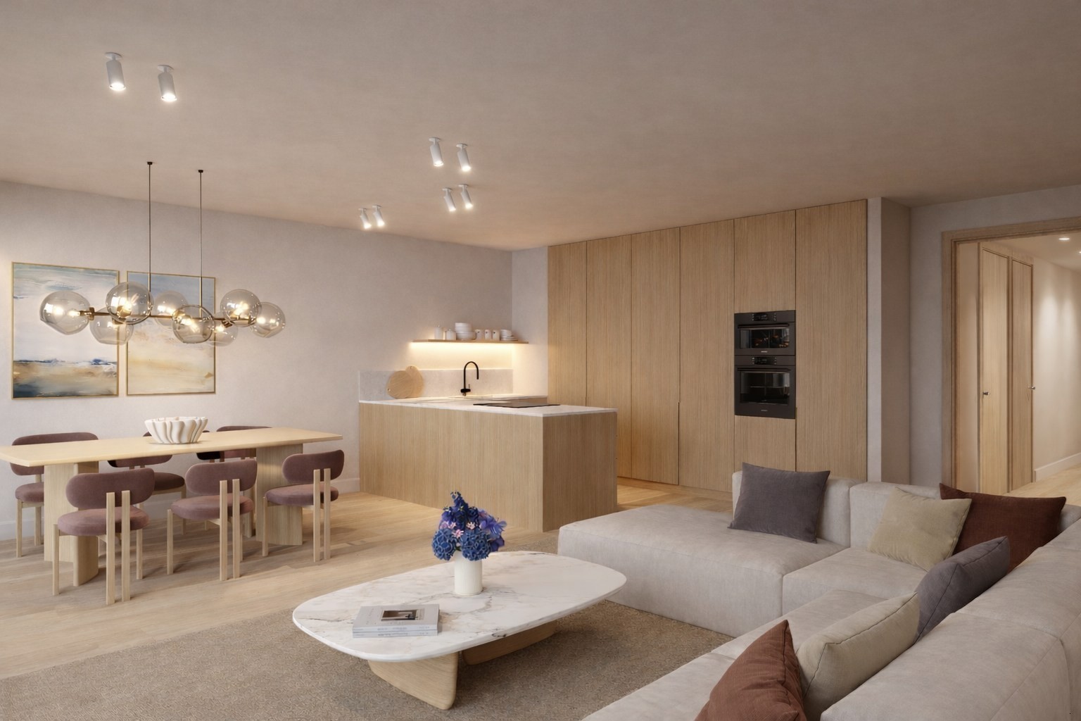 Via de private inkom betreedt u de woning, wat meteen zorgt voor een gevoel van privacy en comfort. Op het gelijkvloers bevindt zich de royale leefruimte met open keuken, waar grote raampartijen zorgen voor een mooie lichtinval en een directe connectie met het zonnige terras van ca. 13 m². De indeling is ruim en praktisch, ideaal voor zowel dagelijks wonen als het ontvangen van gasten.