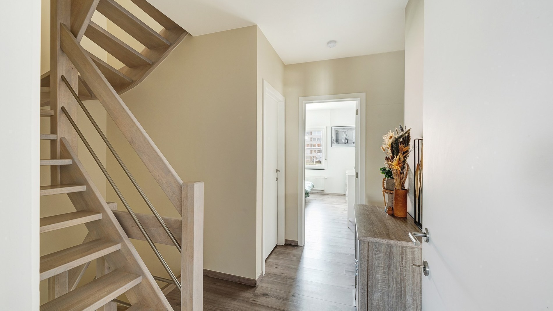 Op de eerste verdieping drie volwaardige slaapkamers, een apart toilet, en een enorme badkamer met inloopdouche en ligbad. Vaste trap naar de tweede verdieping met nog eens 2 kamers (waarvan 1 enorme masterbedroom). Ruime opbergzolder onder de nok.