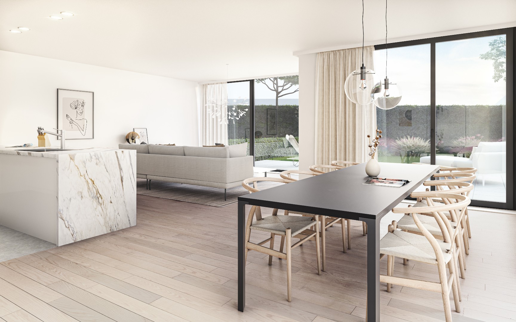 Magna Frisia kenmerkt zich door haar luxueuze vormgeving en modern karakter. De afwerking is van hoogwaardige kwaliteit en voldoet aan de laatste normen met betrekking tot isolatiewaarden en energie-efficiëntie. Beide woningen worden luxueus afgewerkt en beschikken over een garagebox met oprit en tuin met terras.