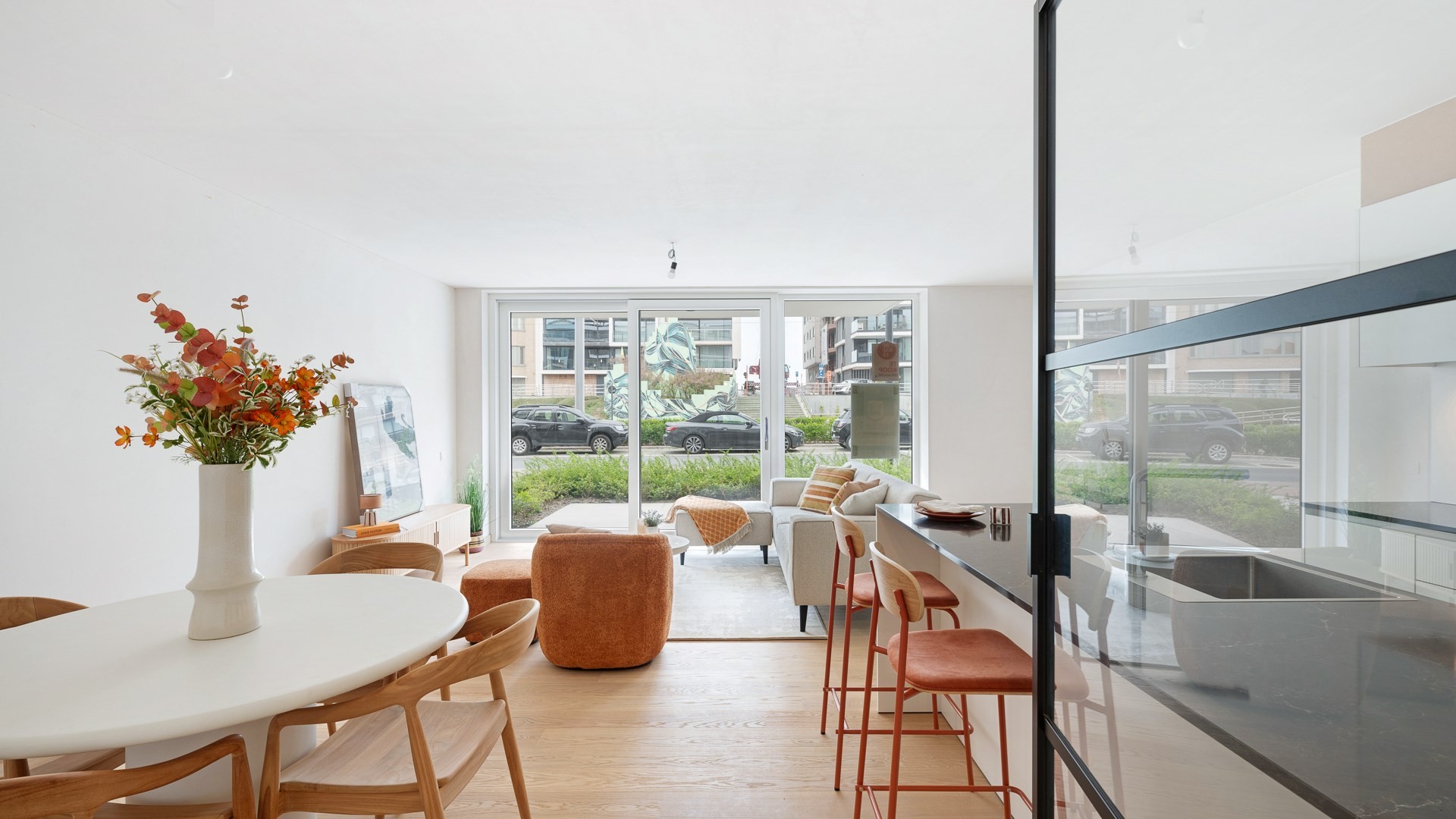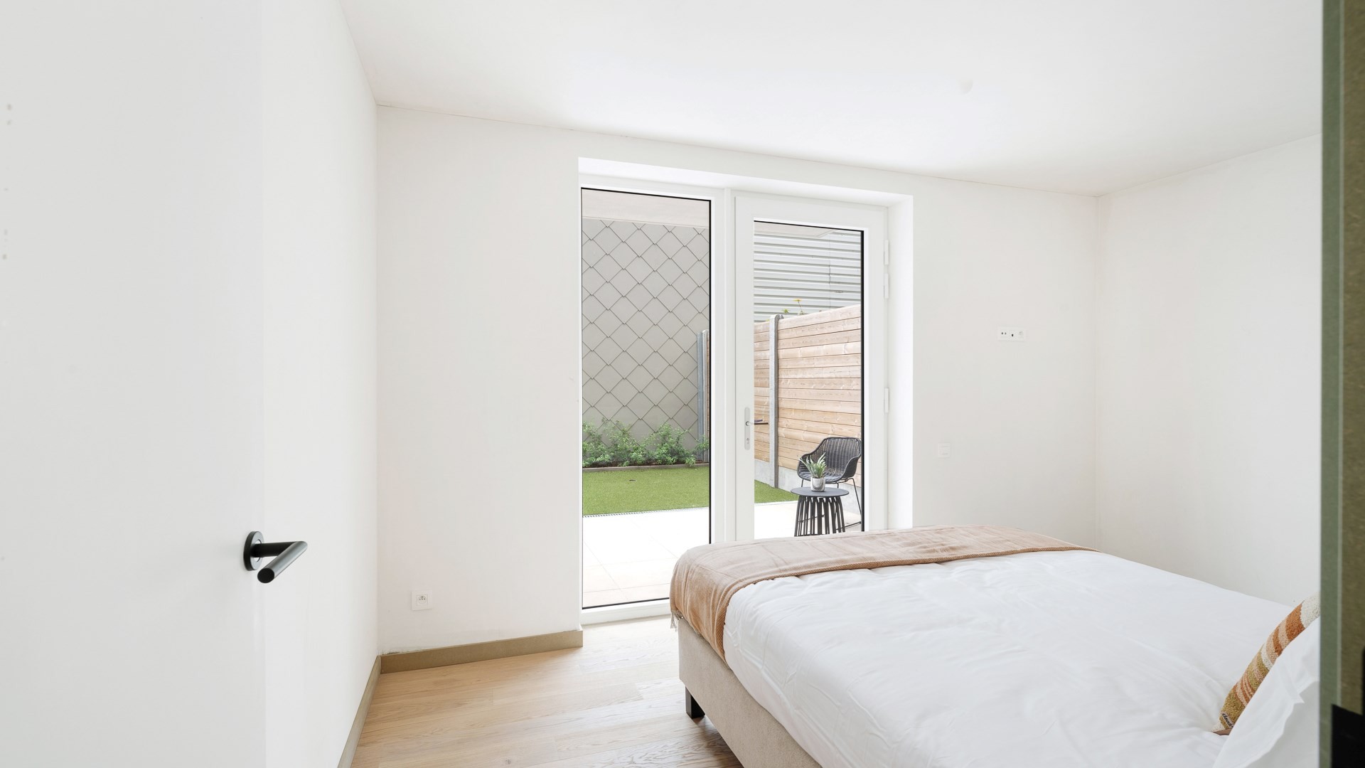 Een schitterend gelijkvloers appartement met 2 slaapkamers, 2 terrassen en een privaat tuintje. Reeds afgewerkt en beschikbaar bij akte!